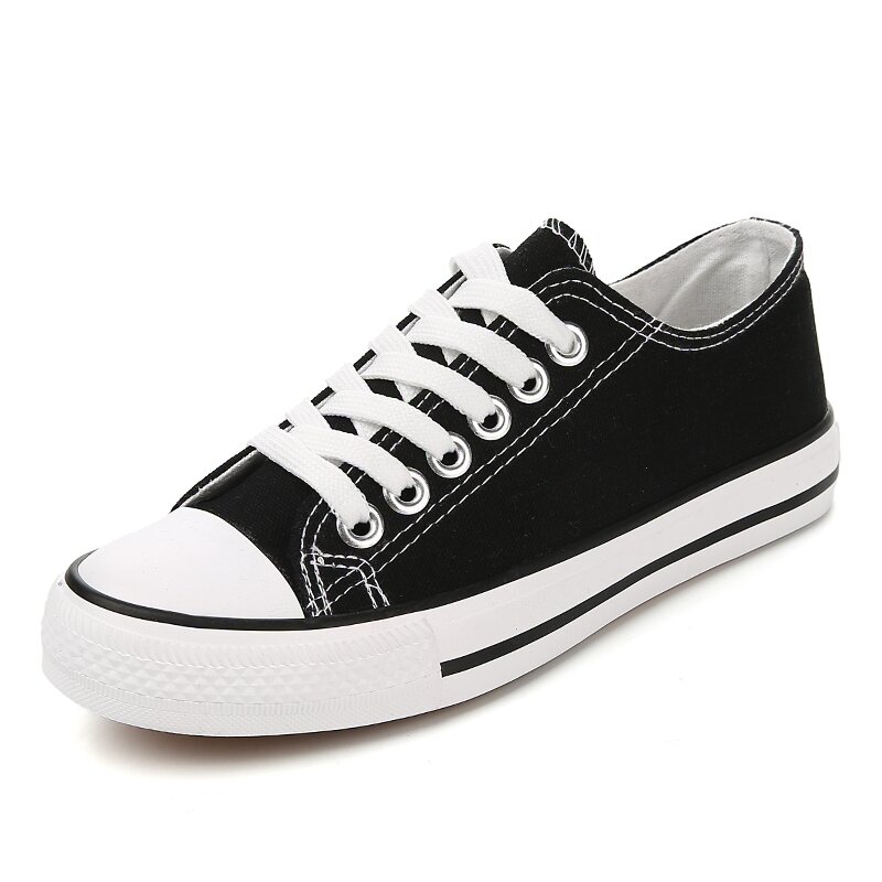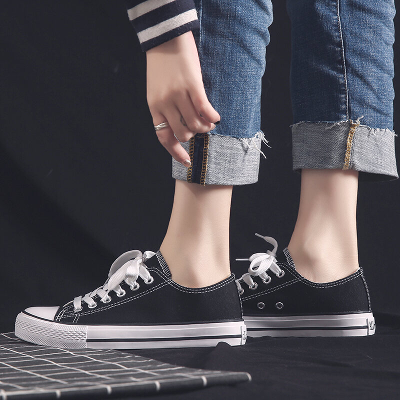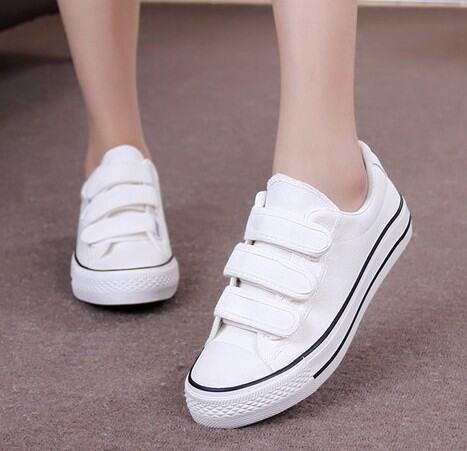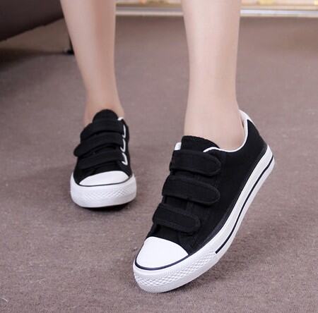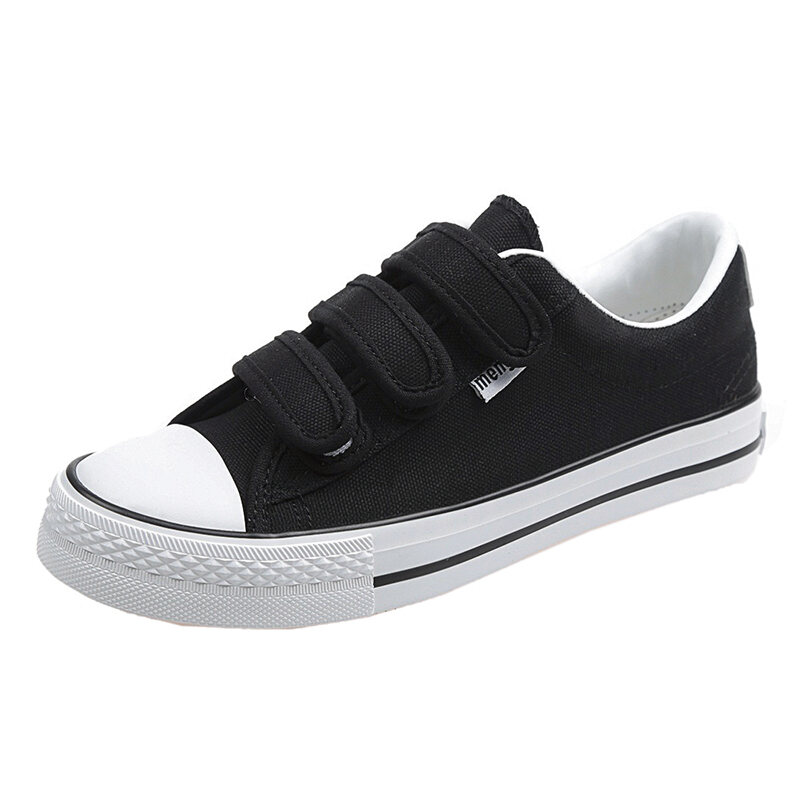 Preppy Style Low Ankle Canvas Shoes White Velcro Sneakers Men's and Women's Middle School Students' Black Sneakers Casual Sneakers