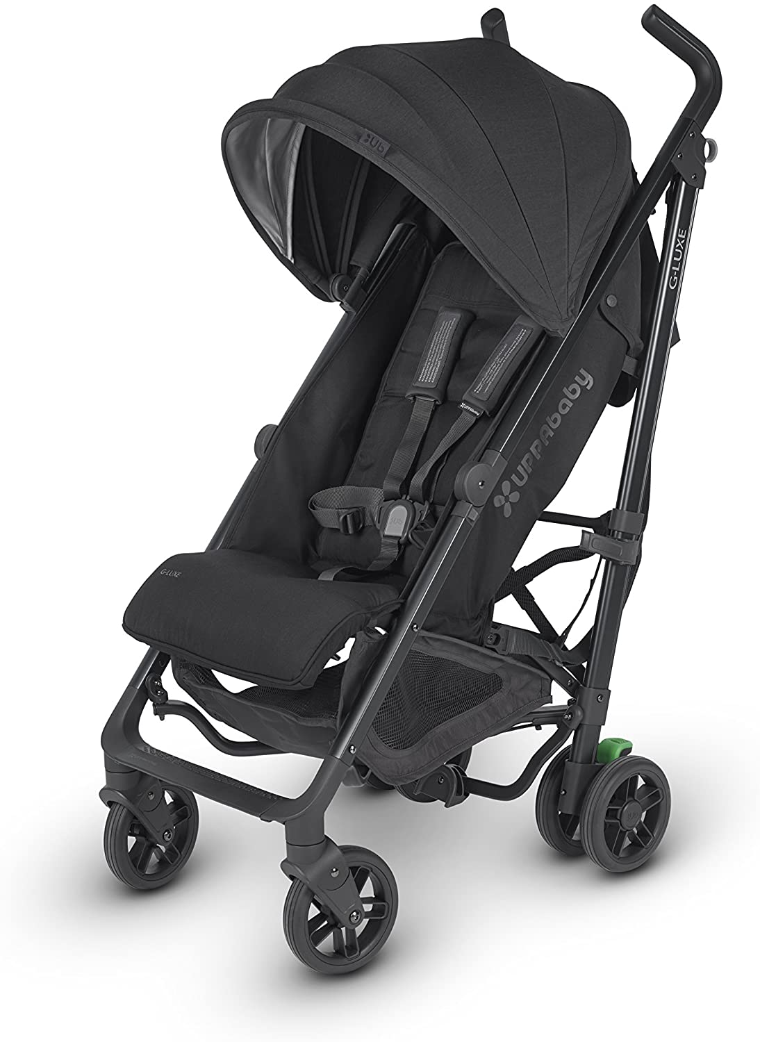 G-LUXE StrollerOne-handed actuated recline and adjustable footrestLarge stretch knit canopy with extendable UPF 50+ sunshade for great sun and wind protectionEasy to remove washable fabricsIncluded cup holder.Seat Orientation:Forward FacingStands when foldedThe UPPAbaby G-LUXE lightweight umbrella stroller provides flexibility every parent needs Whether an ideal companion for running errands or the perfect ride for catching the sites while your little one reclines for a quiet nap, the G-LUXE has your travel needs covered At just 15lbs you can easily pick up and carry over your shoulder or fold to a standing position and tuck into the corner. Lightweight aluminum frame with robust profile One-handed actuated recline and adjustable footrest High-performance, 5.75" diameter wheels Shock-absorbing, 4-wheel suspension One-step brake Ergonomic, PVC handles for comfort and easier pushing Hand-level folding triggers-no foot action required Large stretch knit canopy with extendable UPF 50+ sunshade for great sun and wind protection Stands when folded Easy to remove washable fabrics Convenient carry strap 5-point harness Updated large, easy-access basket with 10 lb. weight limit Removable cup-holder included