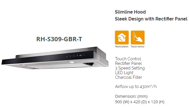 RINNAI RH-S309-GBR-T 90CM TOUCH CONTROL SLIMLINE HOOD