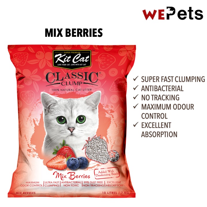 KitCat all-natural cat litters are made from 100% Sodium Bentonite and enhanced with perfume silica beads for superior odour control and maximum moisture absorbency, providing excellent odour control and ease of cleaning. Its superior quick-clumping abilities make clean up a breeze. Just simply scoop the clump and throw it away. The rest of the litter remains clean, odourless and ready to reuse, making it a very economical and environmentally friendly choice and also minimizes dust and tracking around your home!