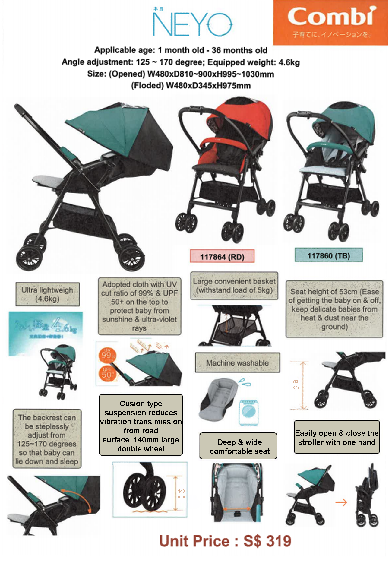 COMBI STROLLER NEYO | FOLDABLE STROLLER (FOC Heat Protector Cover)
