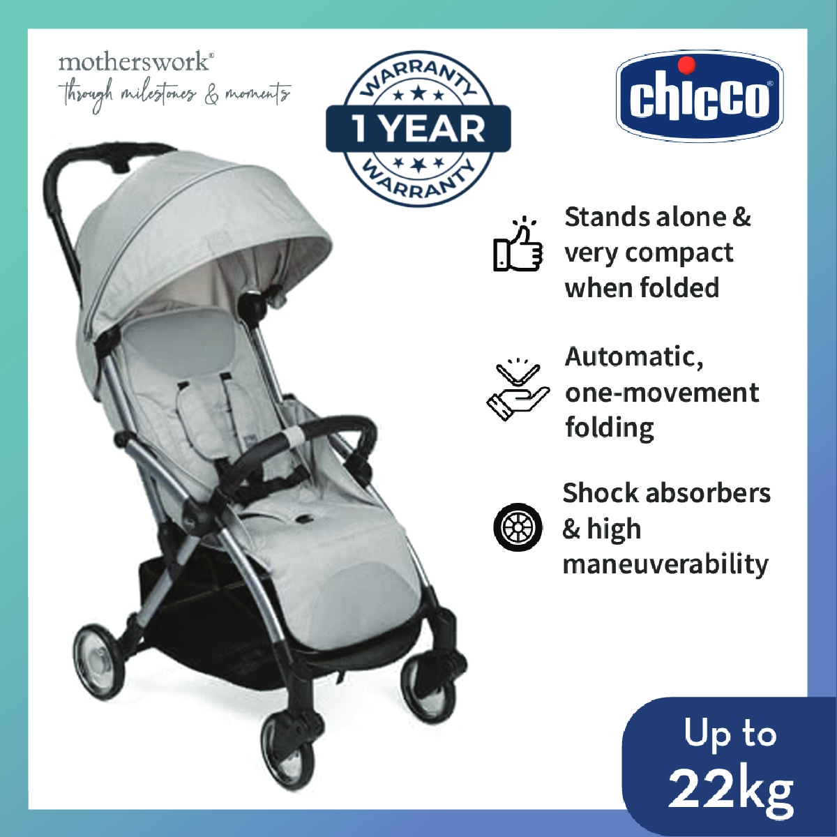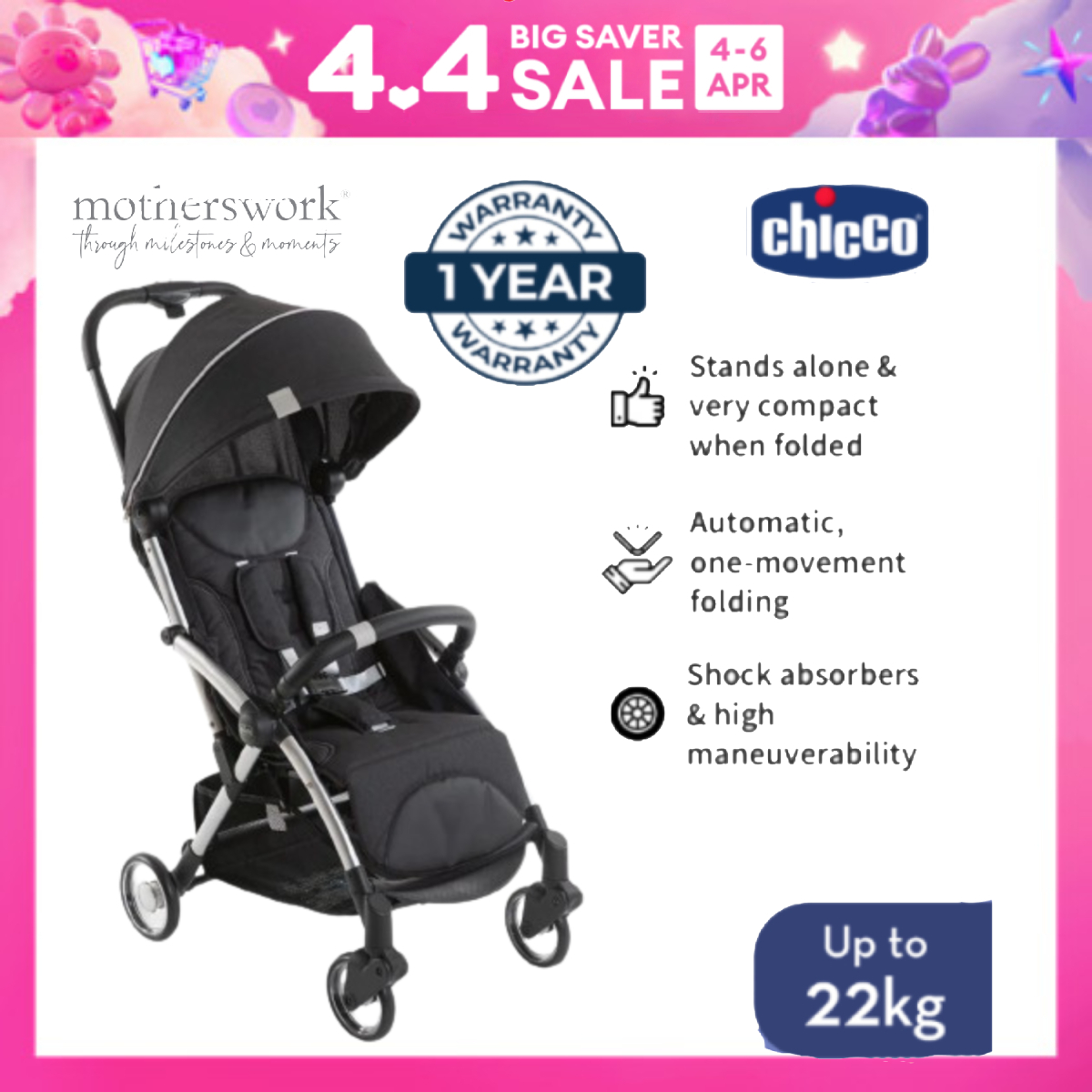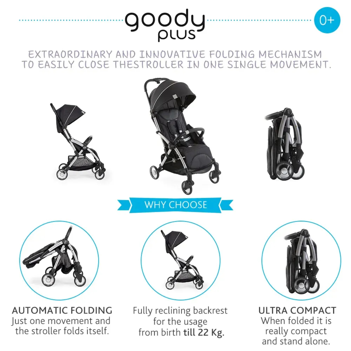[2 Colors] Chicco Goody Plus Baby Stroller (Auto Folding) - 0+ Months & Above Newborn / Infant