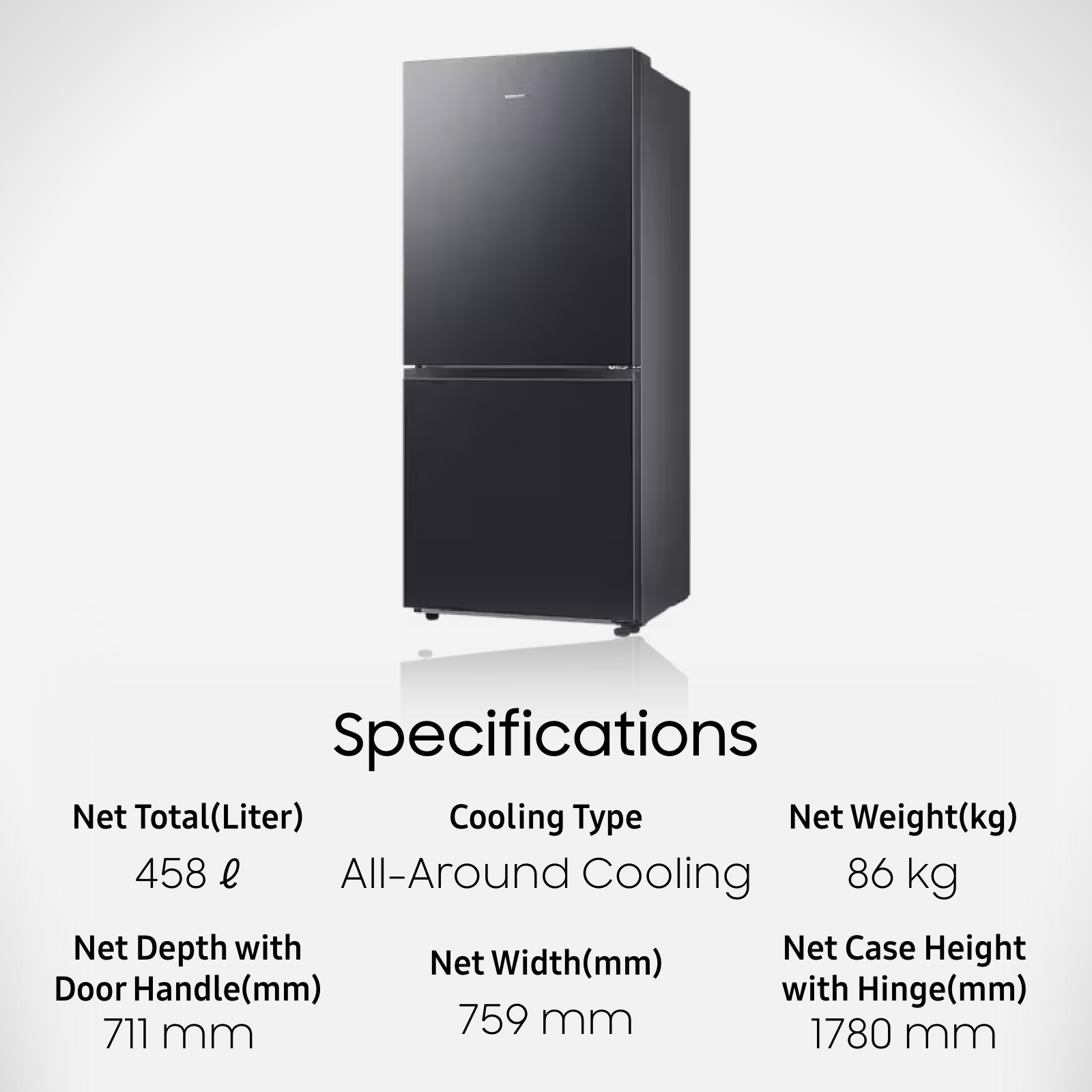 Samsung RB45DG600EB1SS, Bottom Mount Freezer Refrigerator, 458L, 3 Ticks