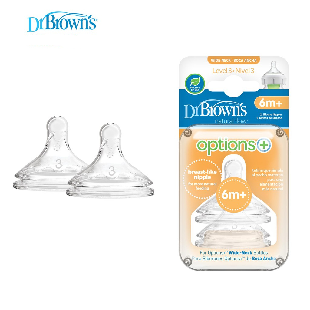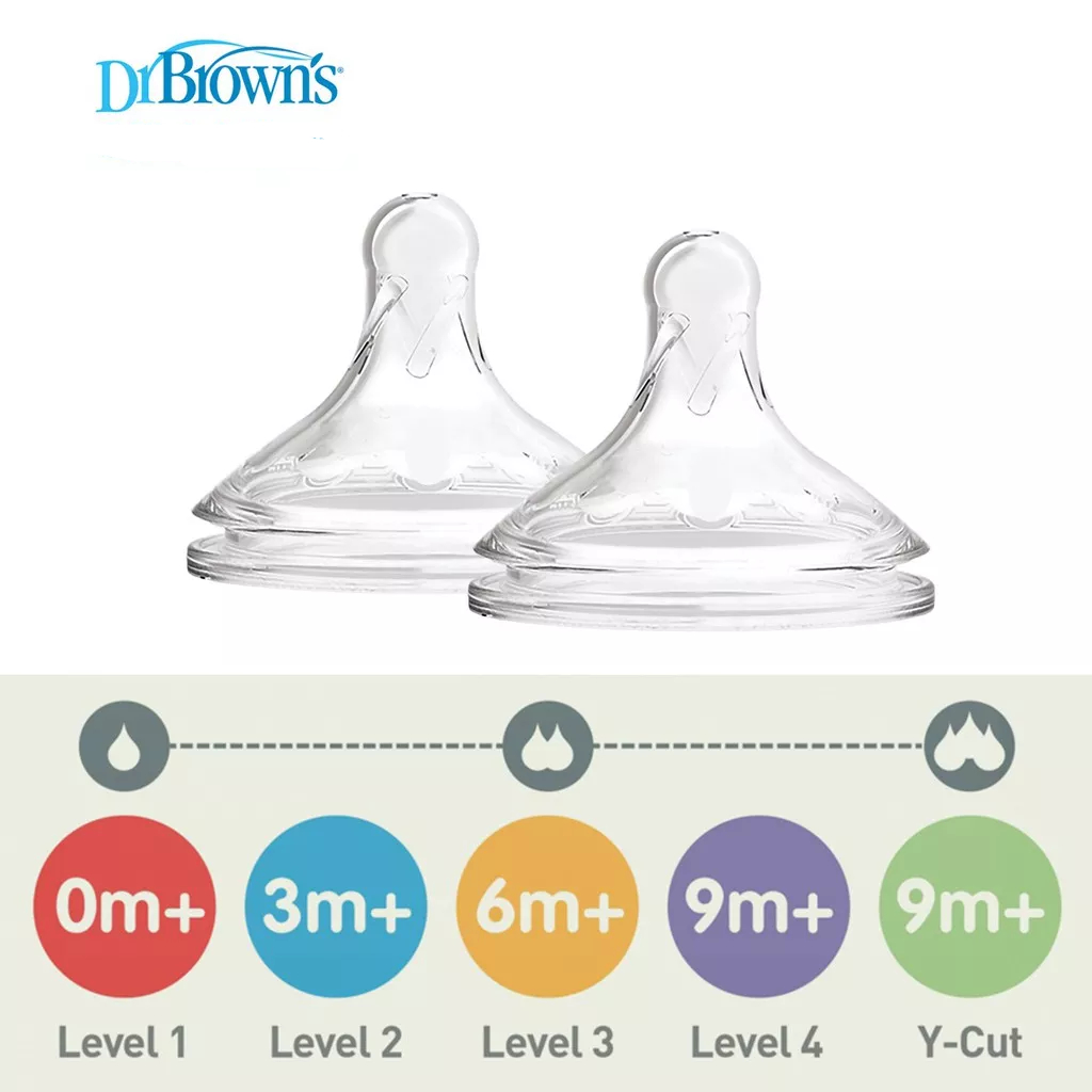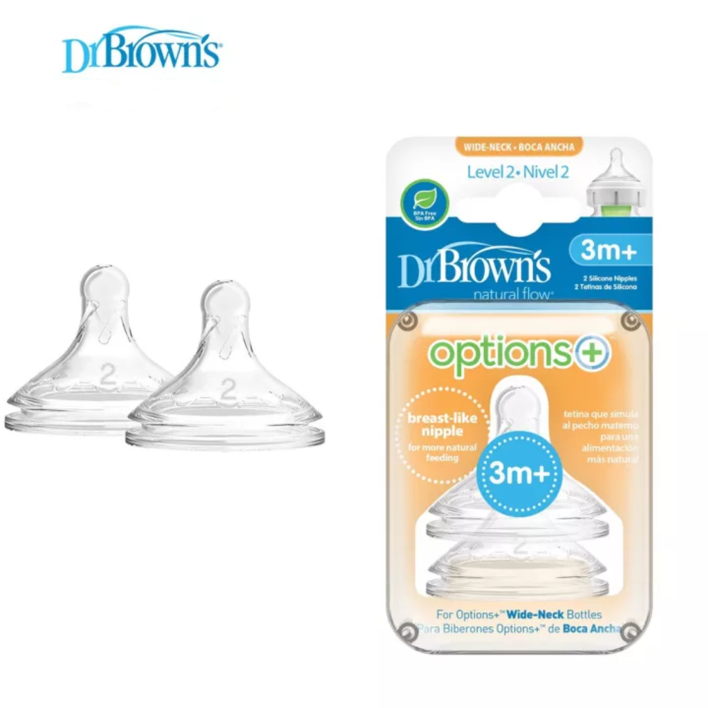 [2 Pcs] Dr Brown BPA-Free Wide Neck Silicone Options+ Bottle Teats Level 1-4 & Y-Cut - 0M+ | dr brown teat / teat / bottle teat