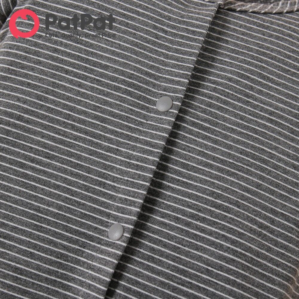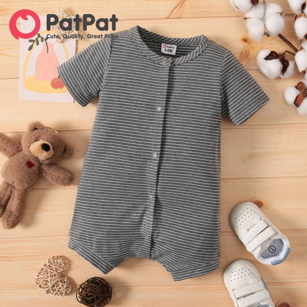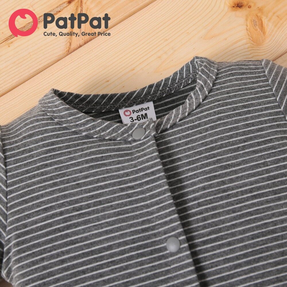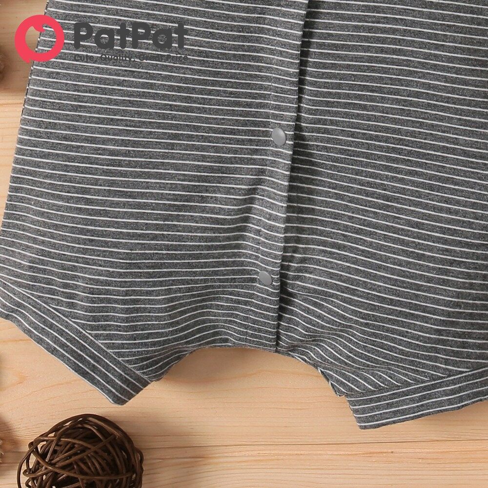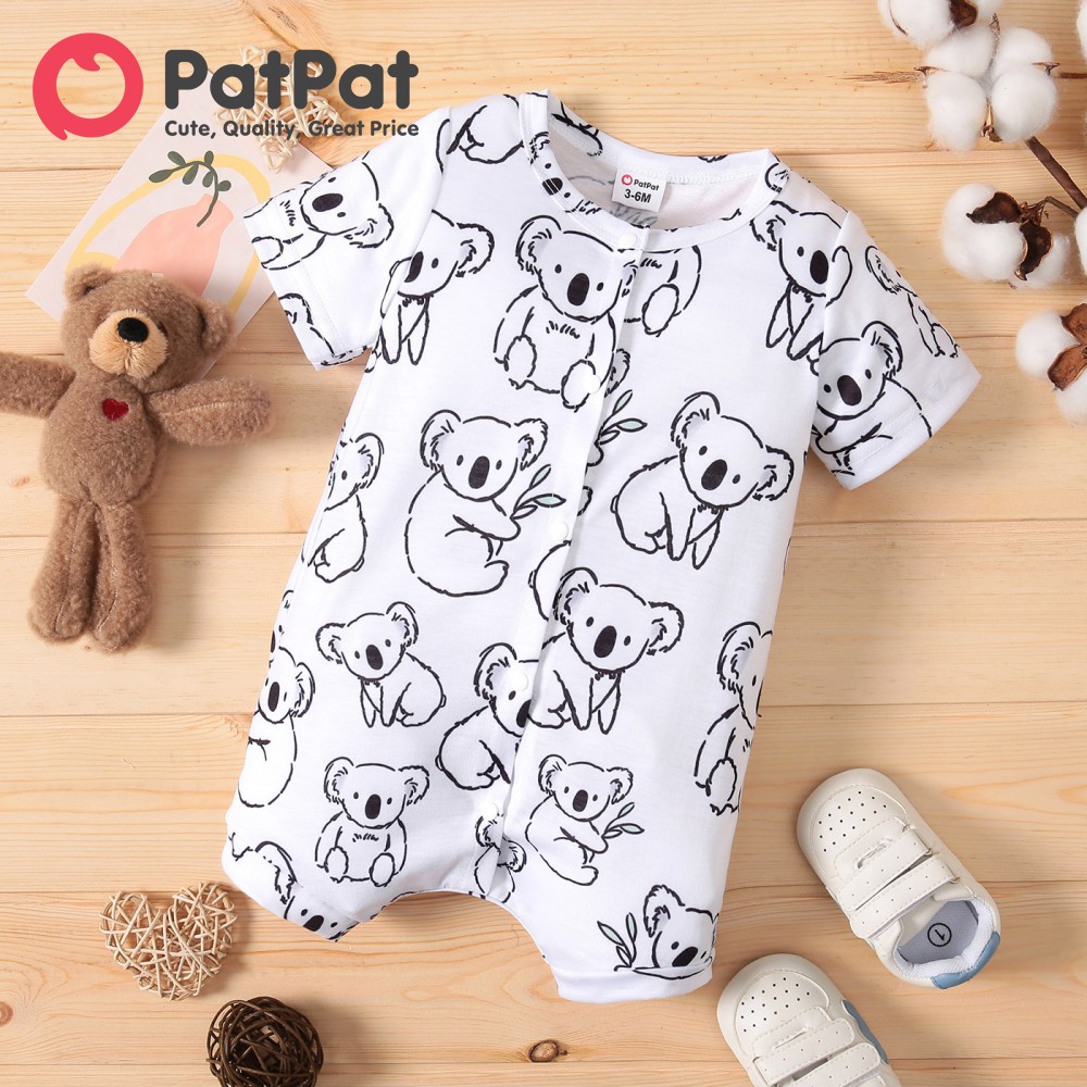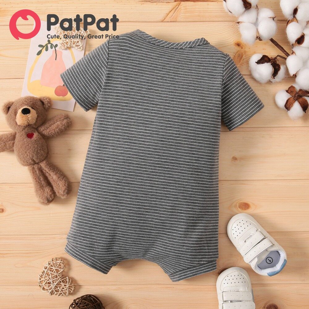 PatPat Baby Boy Clothes Jumpsuit Koala Print White/Grey Striped Short-sleeve Snap Romper
