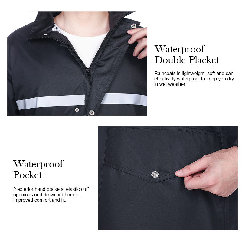 ?? Fast Delivery Split Reflective Tape Cycling Bicycle Travel Hiking Camping Outdoor Adult Raincoat Set Waterproof Breathable Anti-sweat Unisex Cycling Clothing Equipment Reflect Hooded Outdoor Rainwe