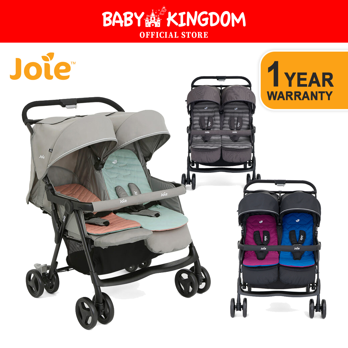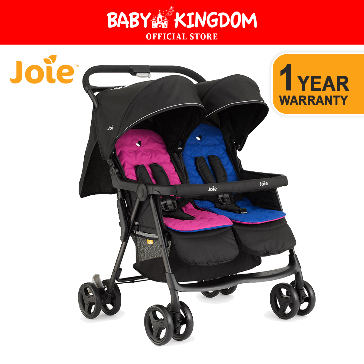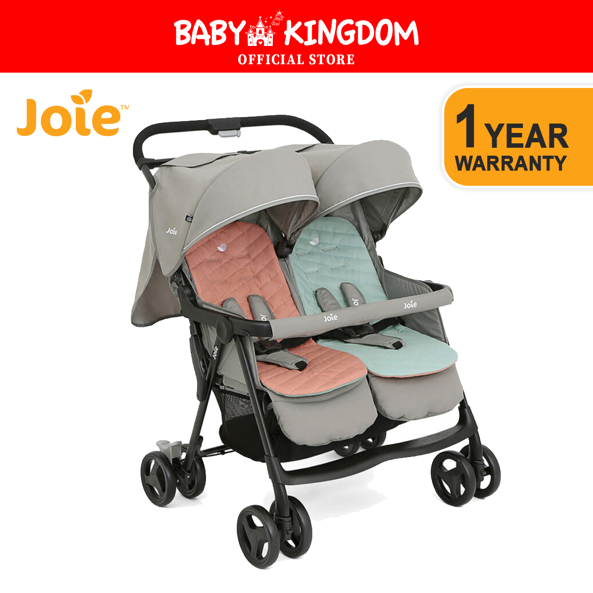 Joie Aire Twin Stroller + Rain Cover (1-Year Warranty)
