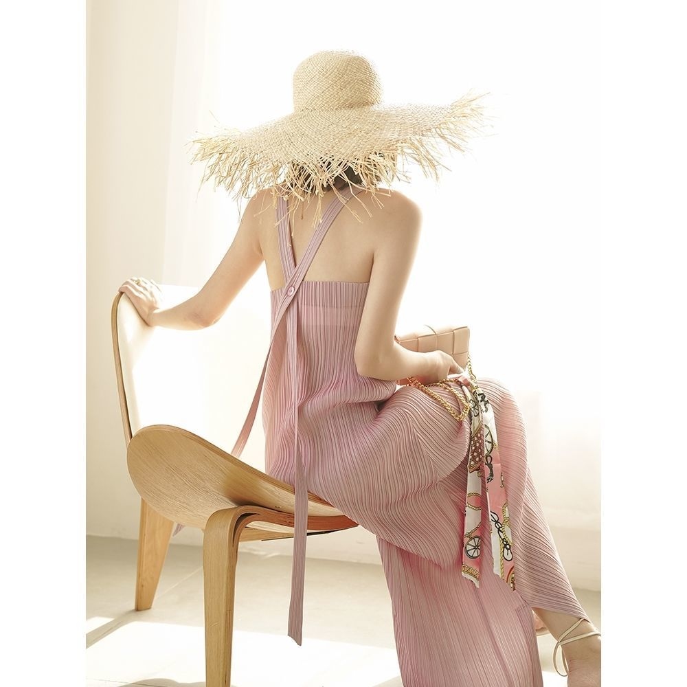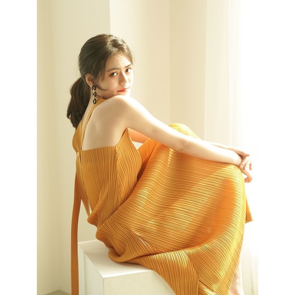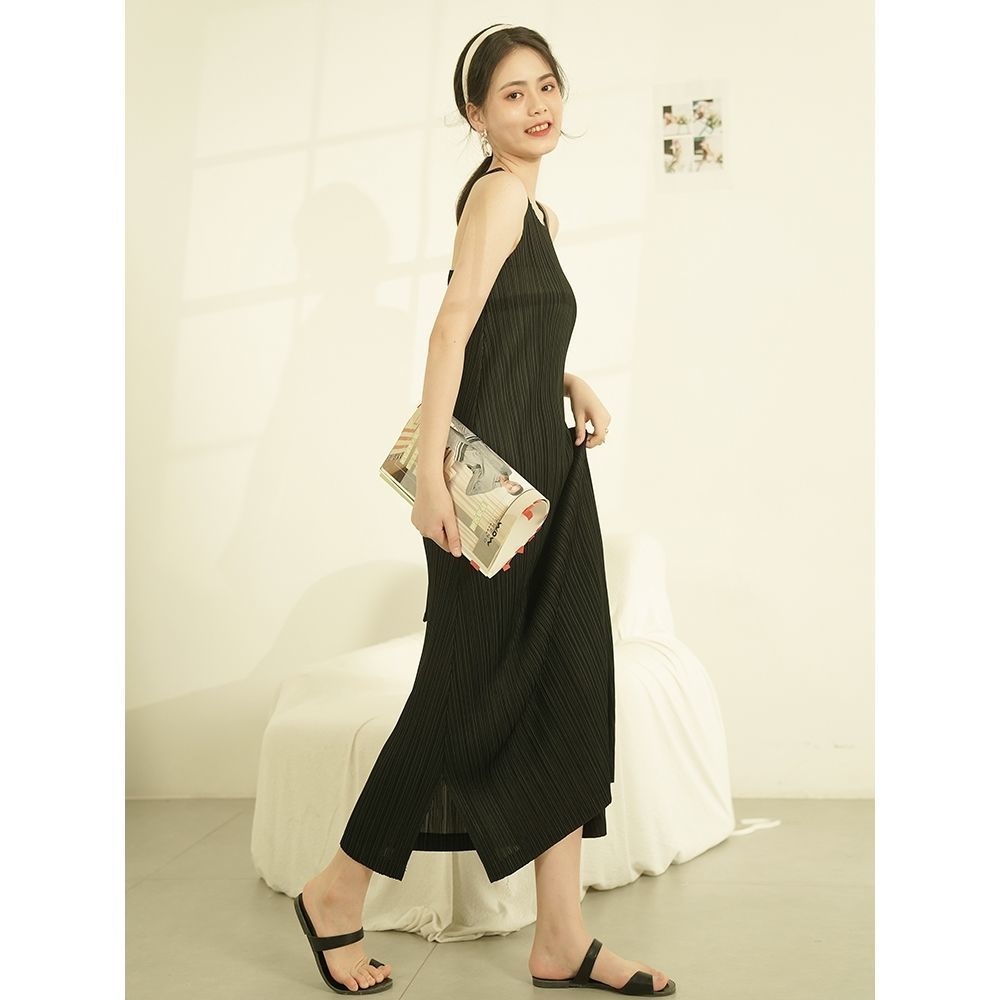 Miyake Pleated Summer Fashion Casual High-Quality Suspender Skirt Slim A-Line Long Skirt Sleeveless