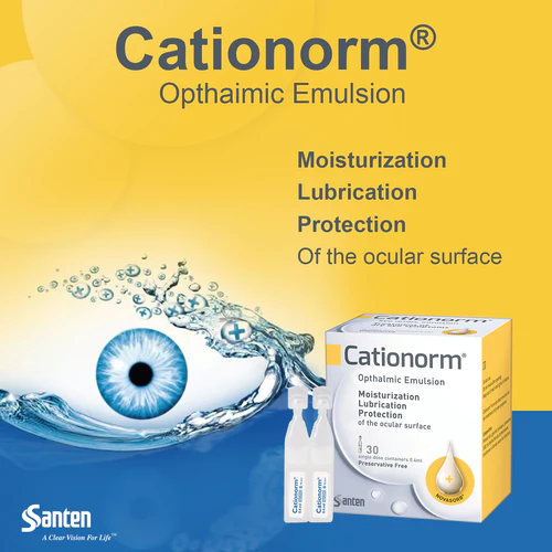 Cationorm® is an emulsion formed by an aqueous phase and an oily phase. The main components of oily phase are mineral oils.
