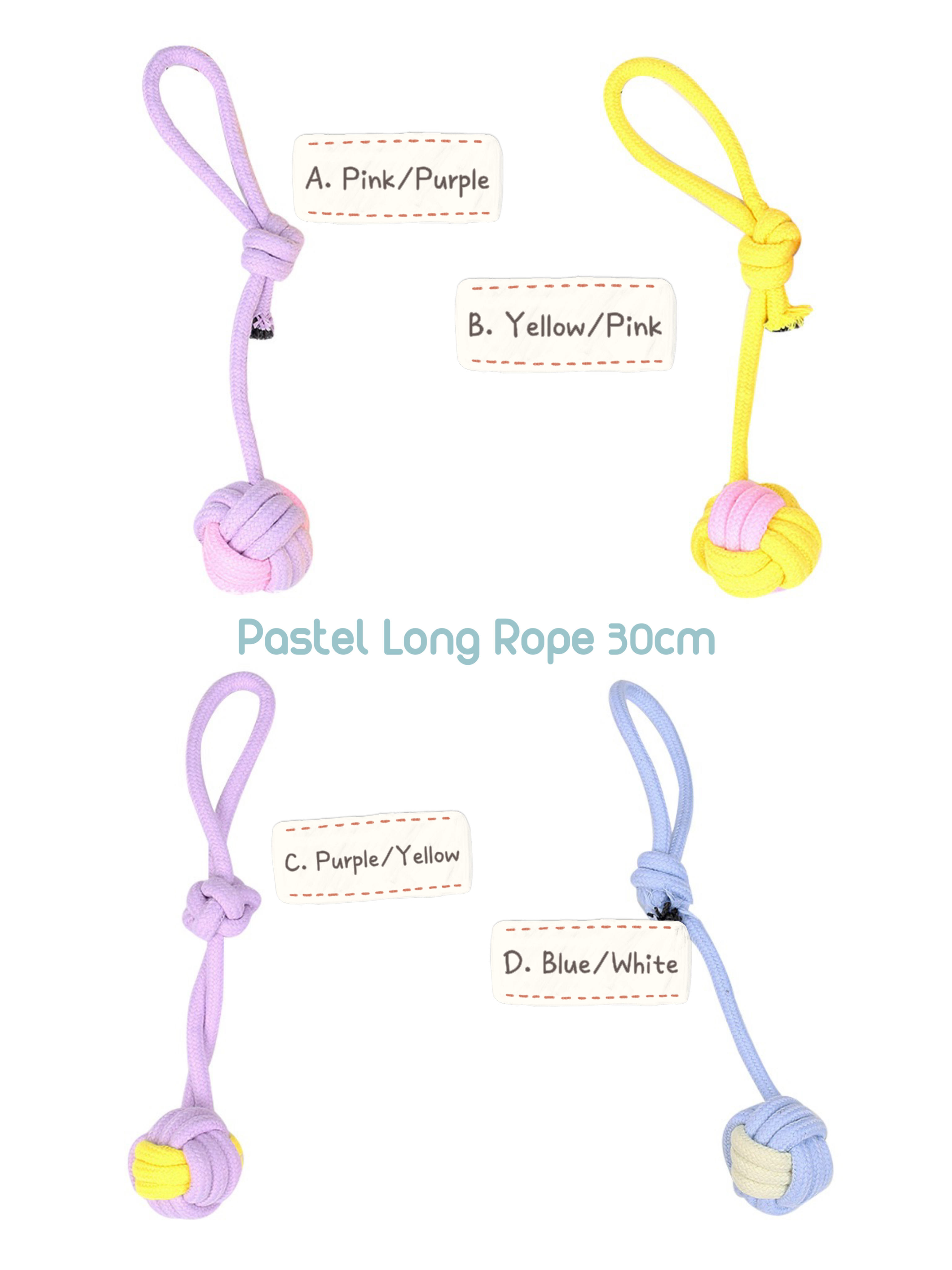 NOTE: No toy is indestructible. This dog rope toy will fray over time. Always supervise your furkids when playing with toys. If you have a super chewer, the baton or wreath rope toy might survive longer. Short and long rope toys are more suitable for medium chewers.
