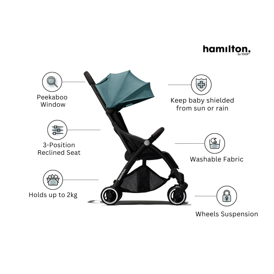 Rollingsurfer Lightweight Baby Stroller, Compact Travel Stroller with Cup Holder & Sleep Shade, Oversize Basket, One Hand Easy Foldable Stroller for Airplane Travel and More