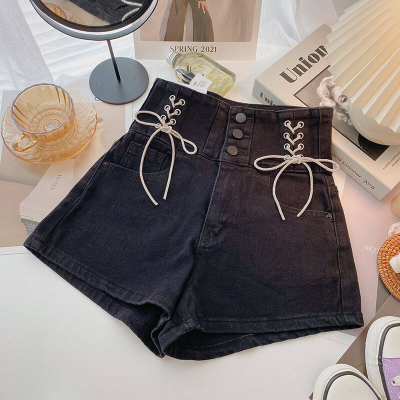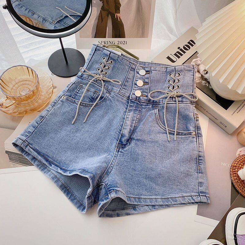 Free Delivery of Women's Denim Shorts Korean Version with High Waistband, Slim Fit and Versatile Personality Wide Leg Pants