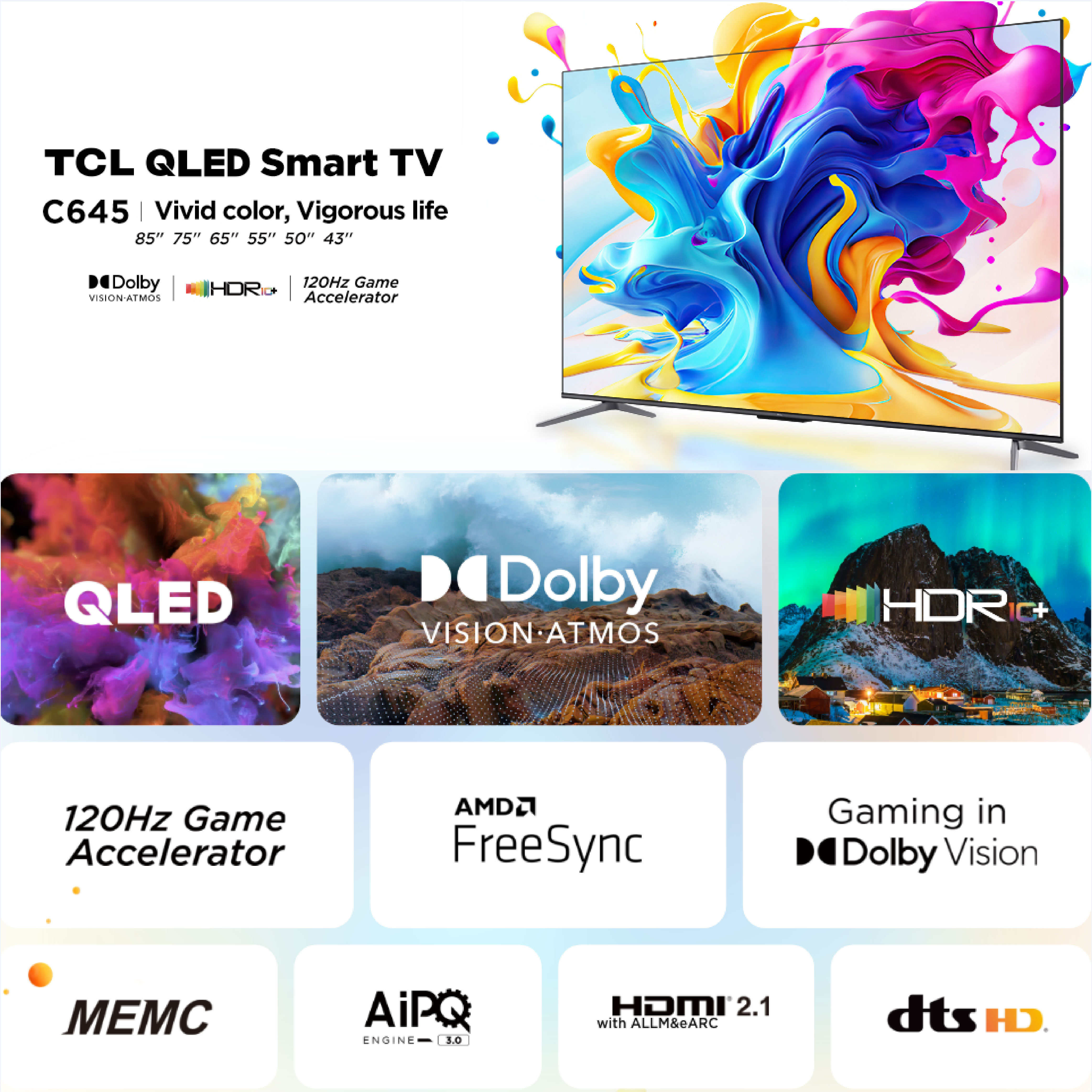 New | TCL C645 QLED 4K Google TV 43 50 55 65 75 85 inch | Wide Color Gamut | Dolby Vision Dolby Atmos | 120 Hz DLG | HDMI 2.1 | Google Duo