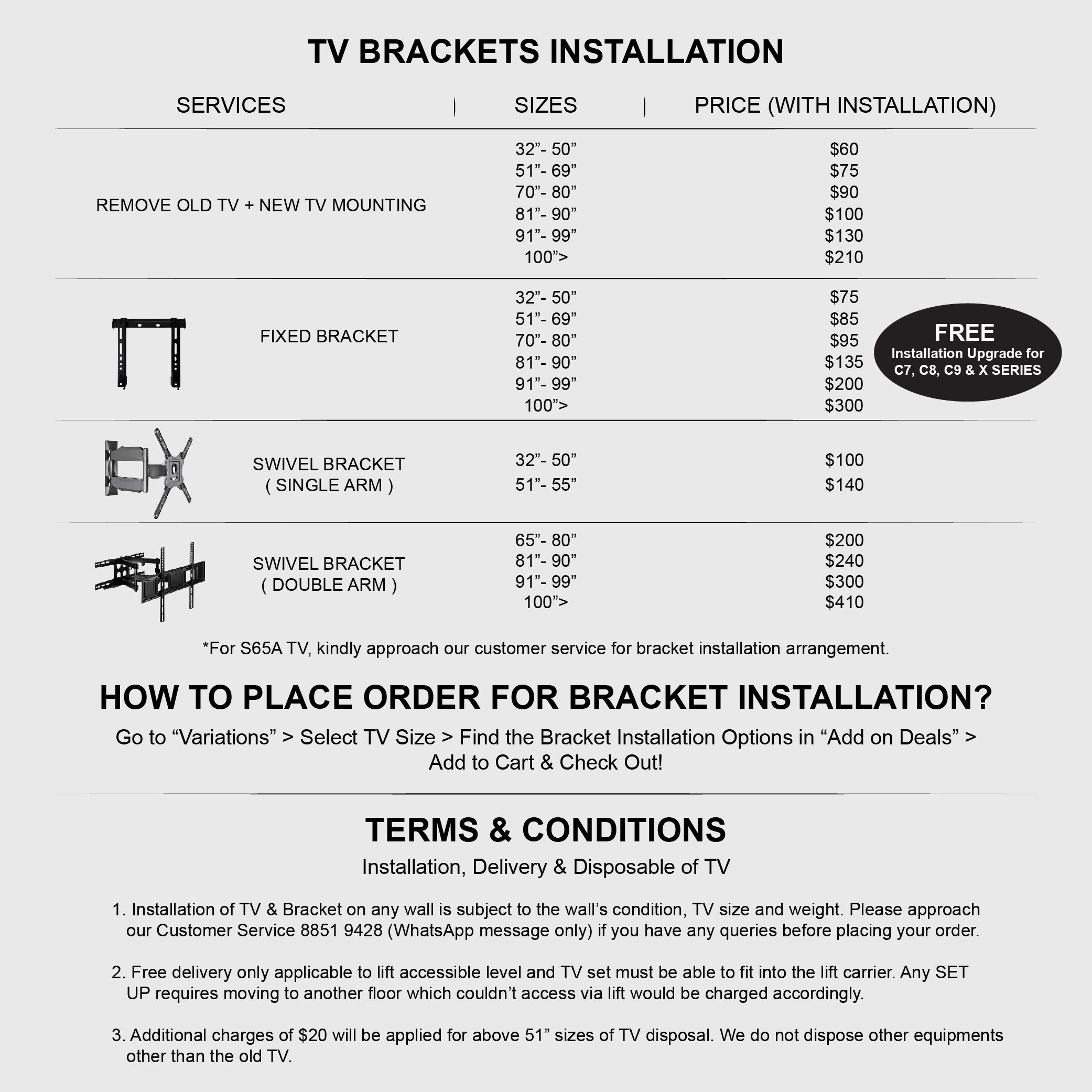 TCL will not hold responsibility nor be held responsible for any inconsistencies caused or damages done to purchased TV from wall-mounting service provided by external installers.