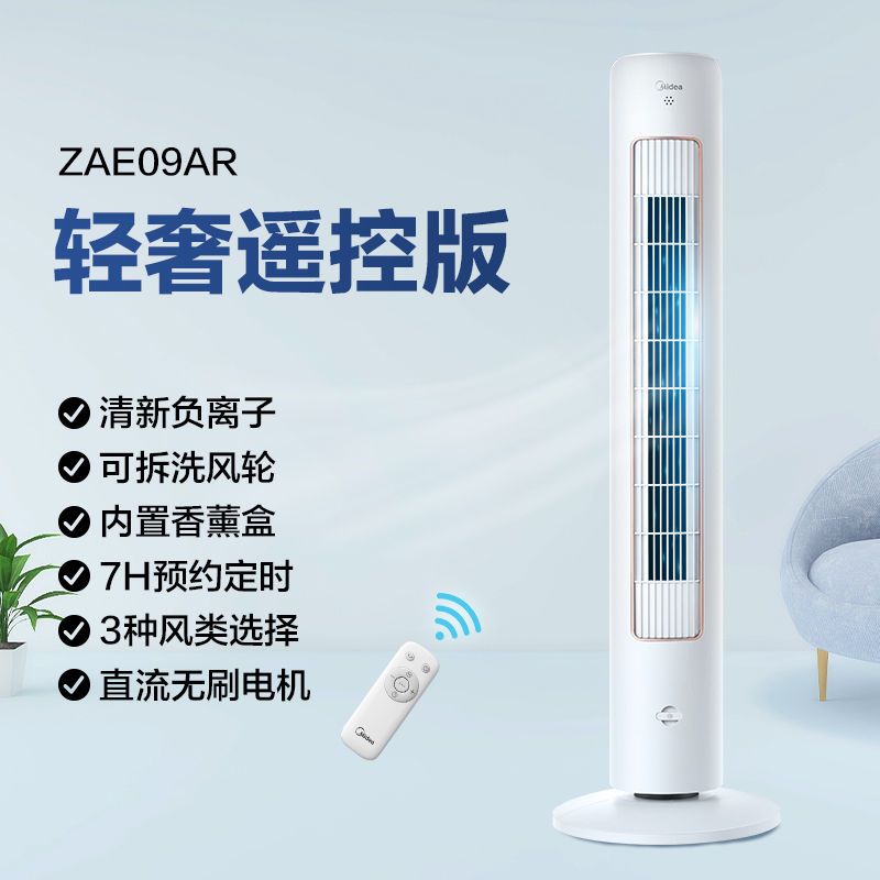 Midea Electric Fan Tower Fan Floor Fan Electric Fan Household Strong Wind and Blade-Free Mute Refrigeration ZAE09MC
