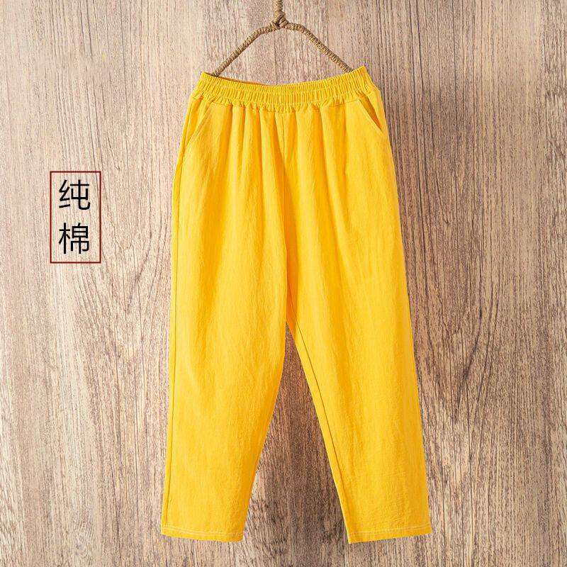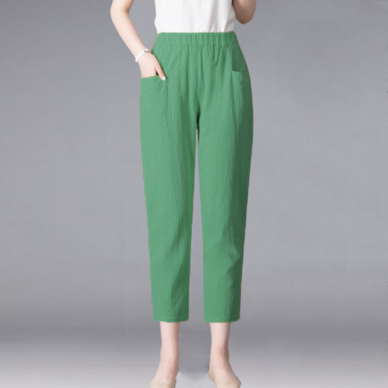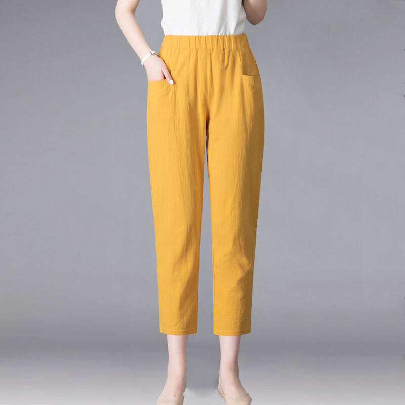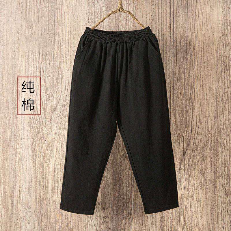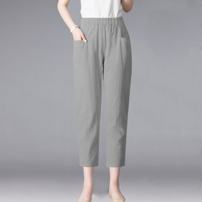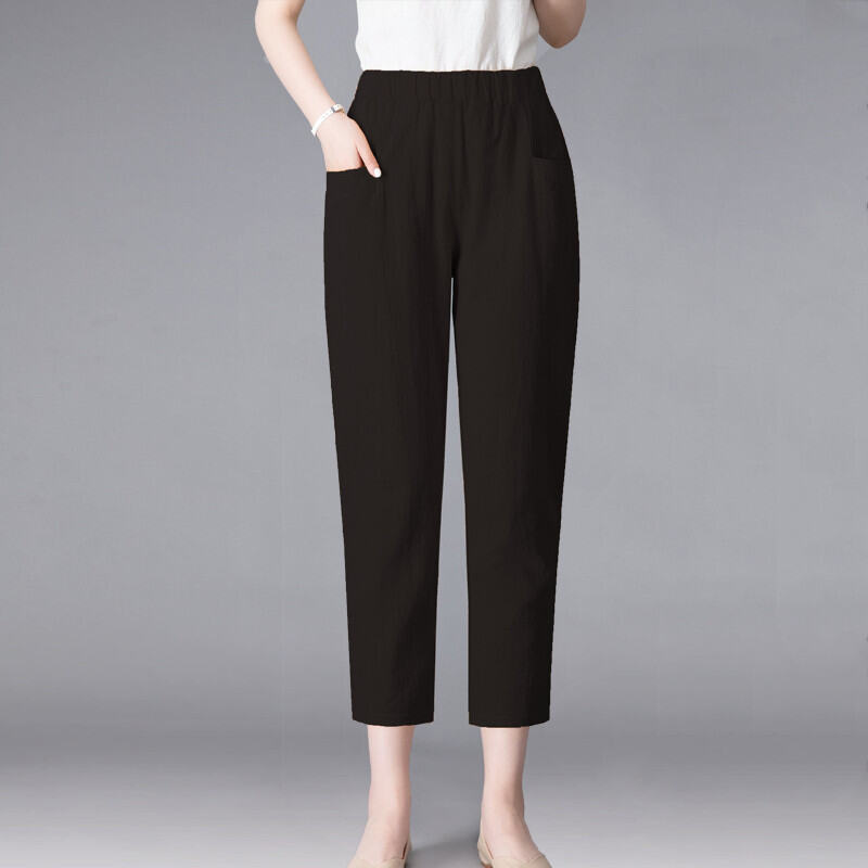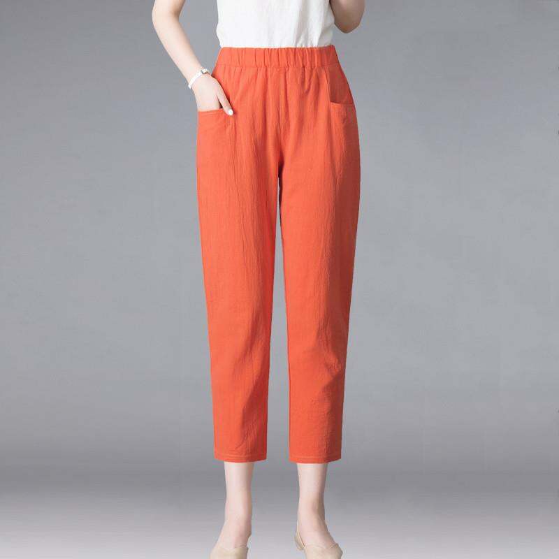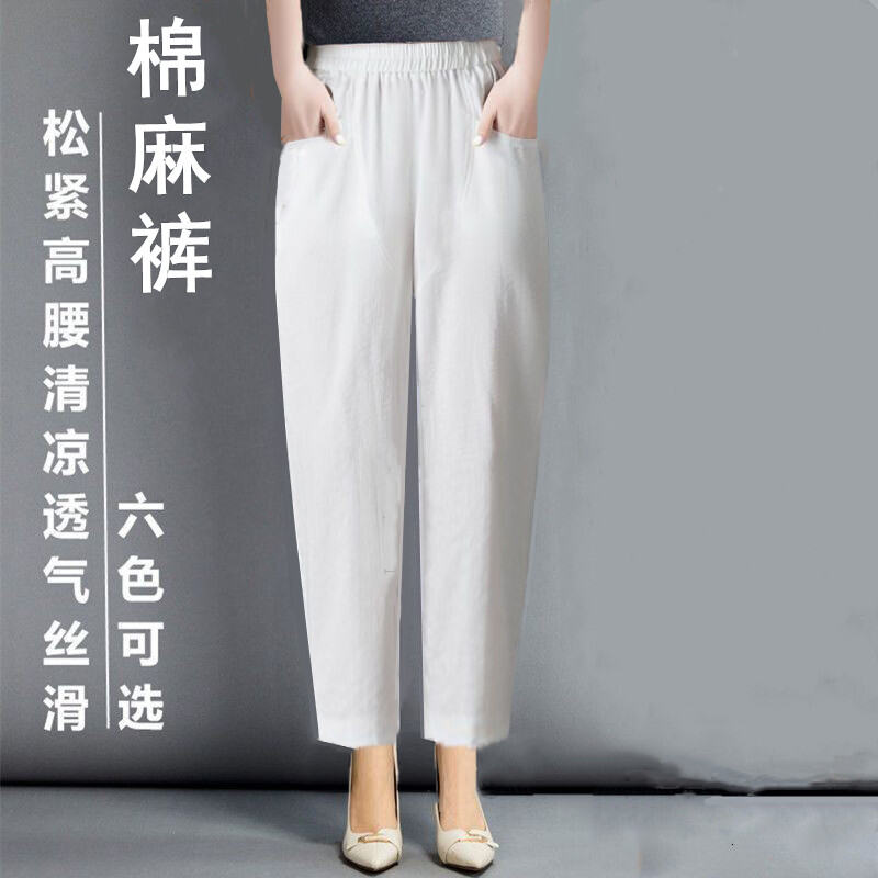 Thin 2024hc Pants Straight-leg Middle-Aged and Elderly White Waist Summer Women's Pants Harem Cotton Linen Loose Ladieswear Break Trousers with an Elasticated Waist