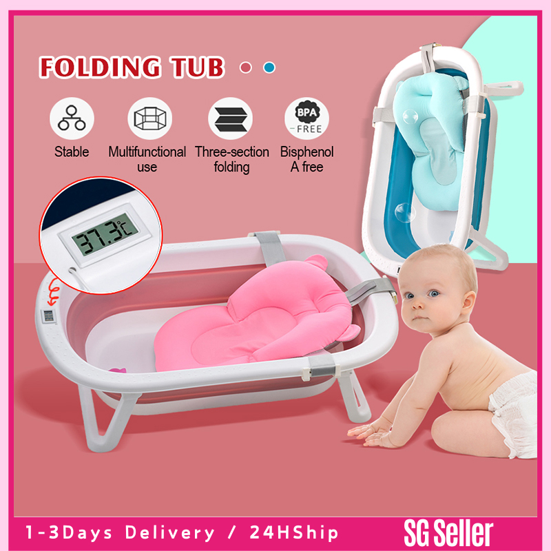 Foldable Baby Folding Bath Tub with Thermometer Collapsible Shower Basin Kids Children Newborn Bathing Bathtub Children Folding Bath Tub Convenient Storage Children Day Gifts