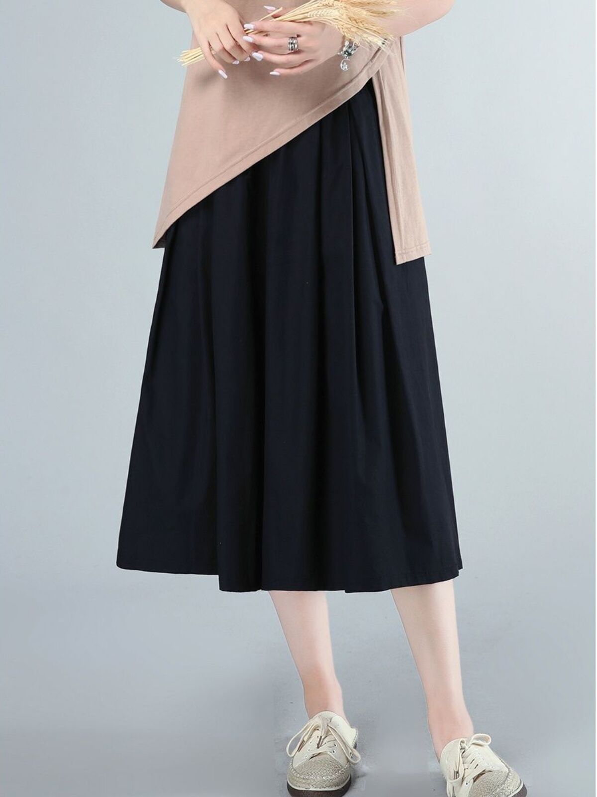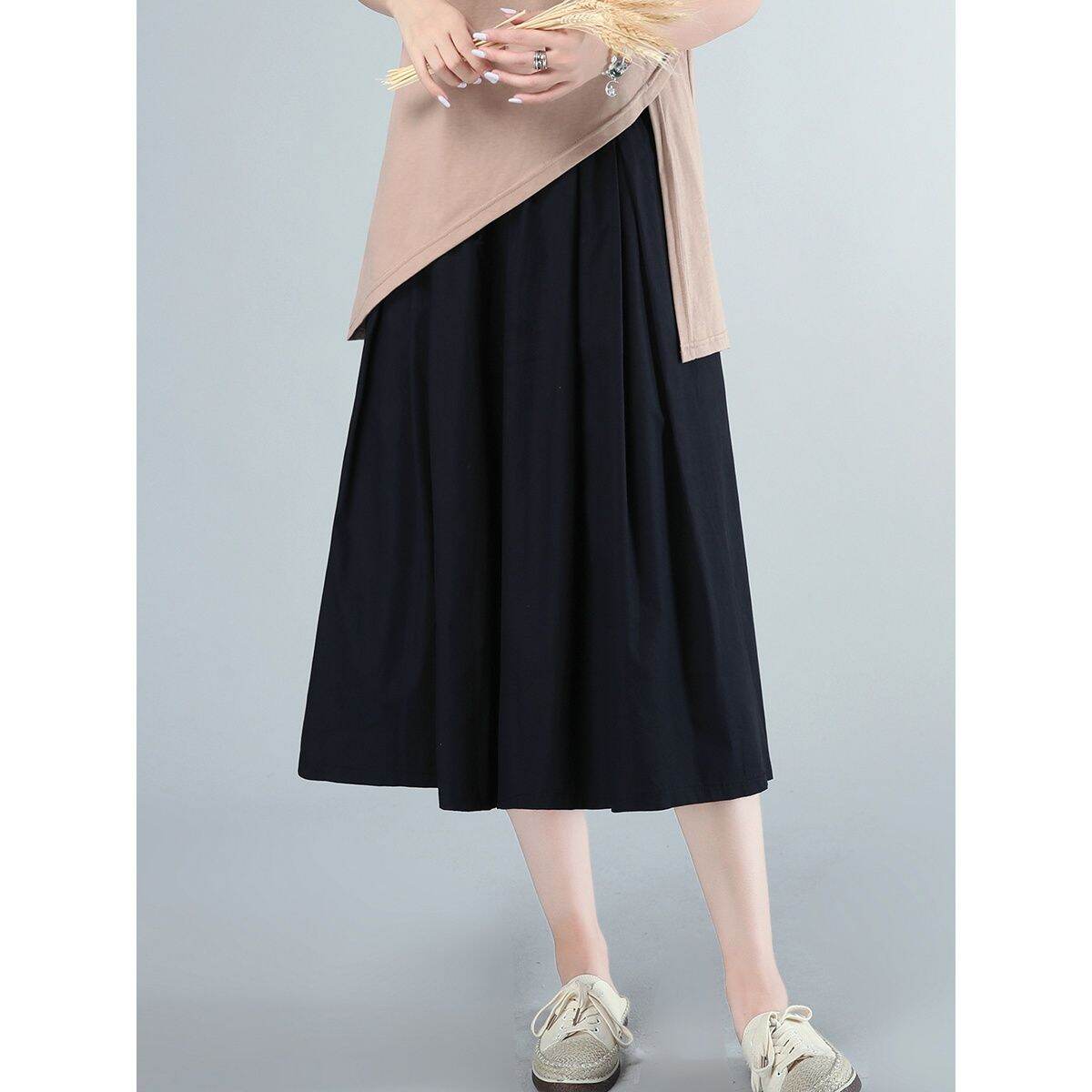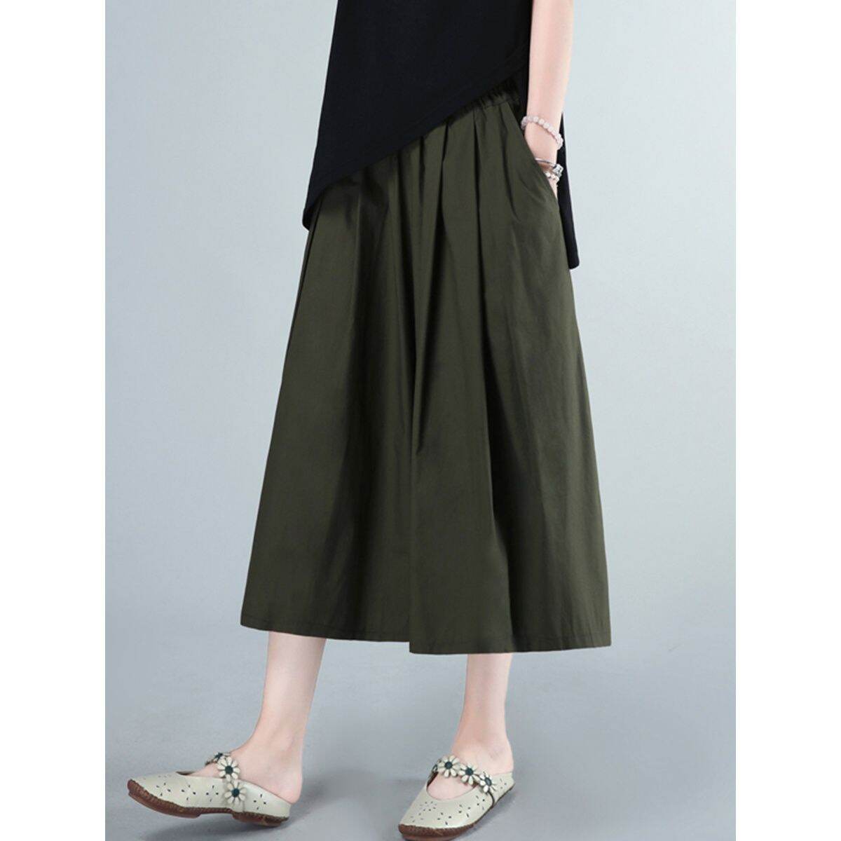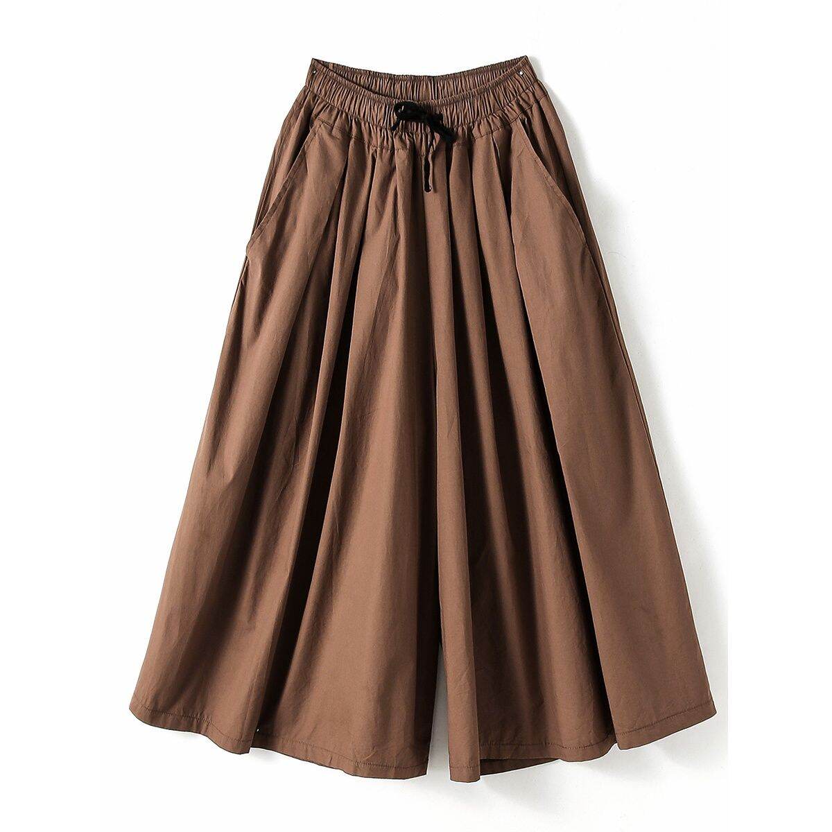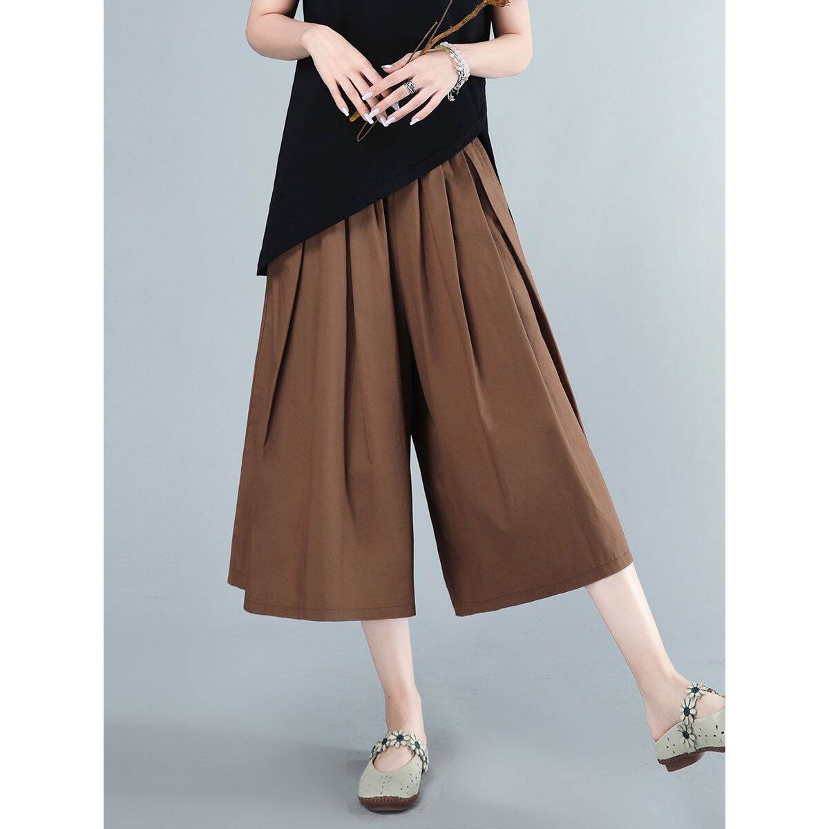 Wide Leg Pants Culottes Women's Mom Clothing Summer plus Size Women's Clothes All-Matching Loose Casual Cotton Skirt Wide-Leg Pants
