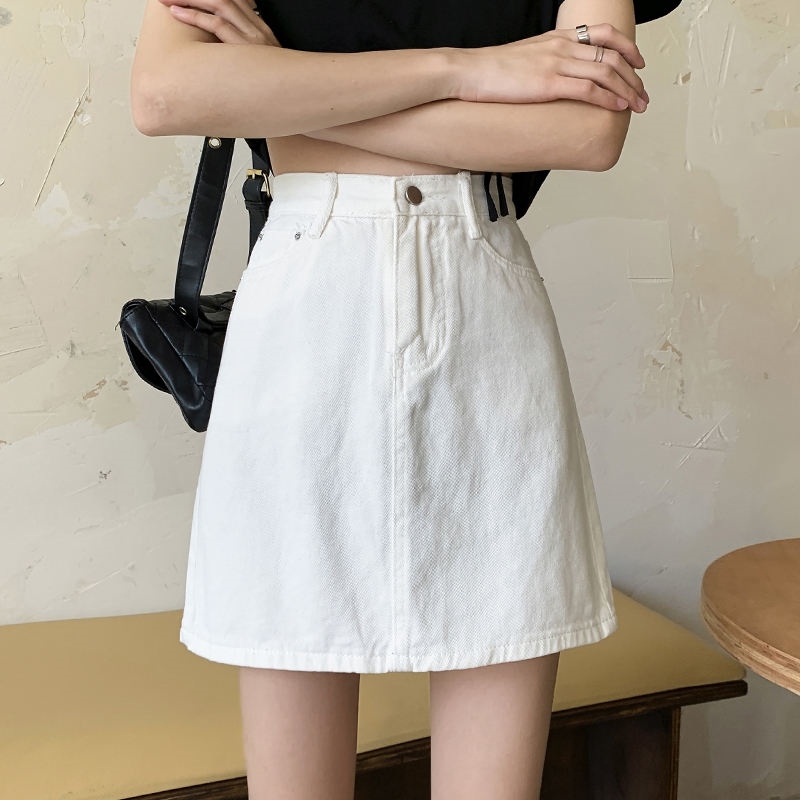 100.00kg Chubby Girl Summer K-style Women's Mid Length Long Length A- line Skirt Elastic Waist One Breasted Pocket plus Size Skirt