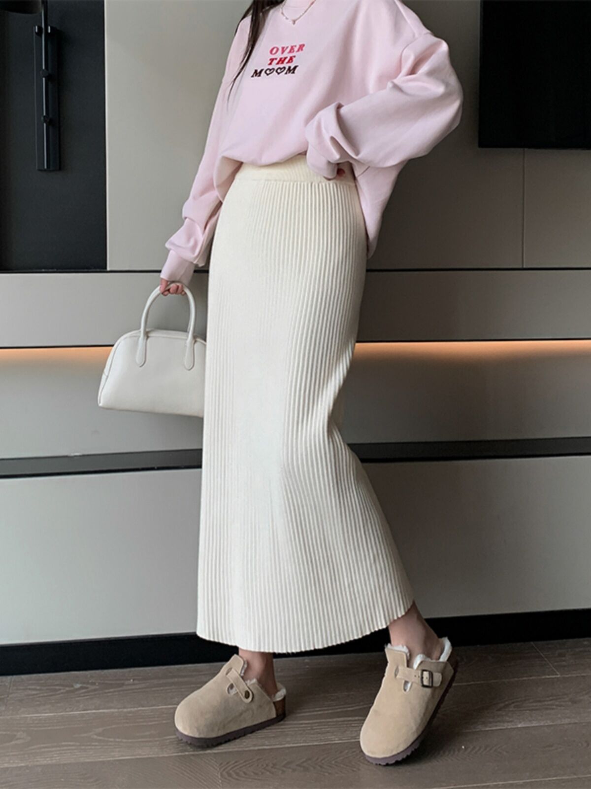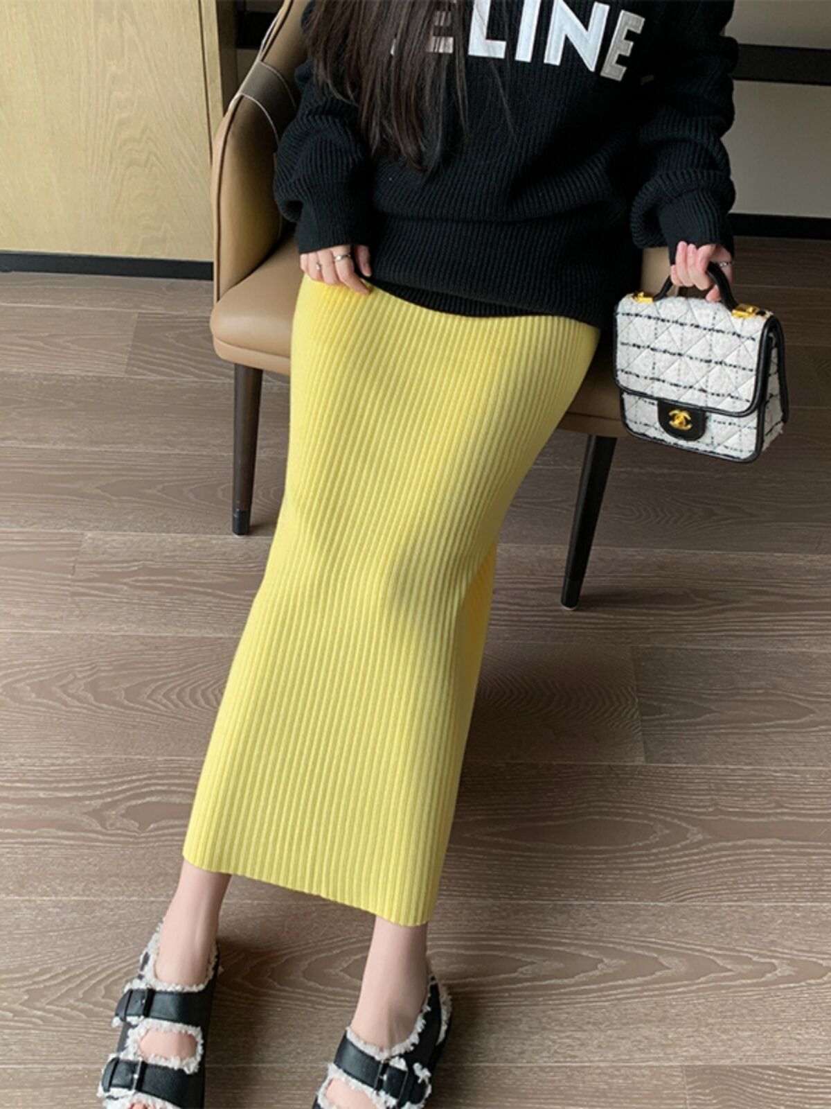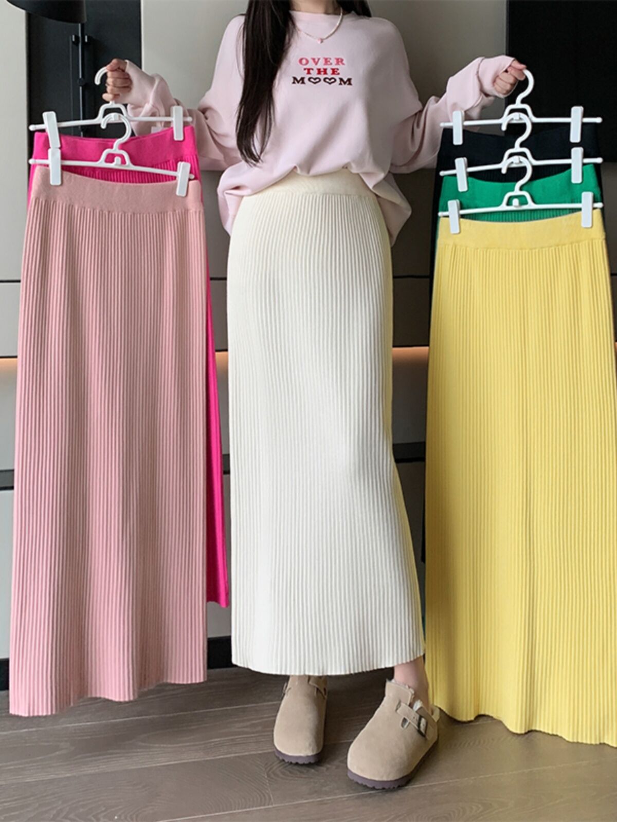 Candy Color Knitted Straight Sunken Stripe Mid Length Long Length Skirt