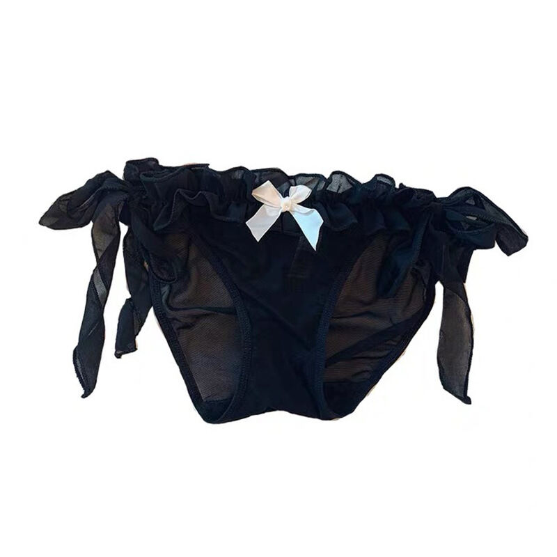 Soft and Adorable Loli Underwear Bow Shoelace Fat Heart-Breaking Maid Low Waist Lace-up Breathable Cotton Crotch Briefs