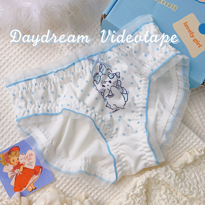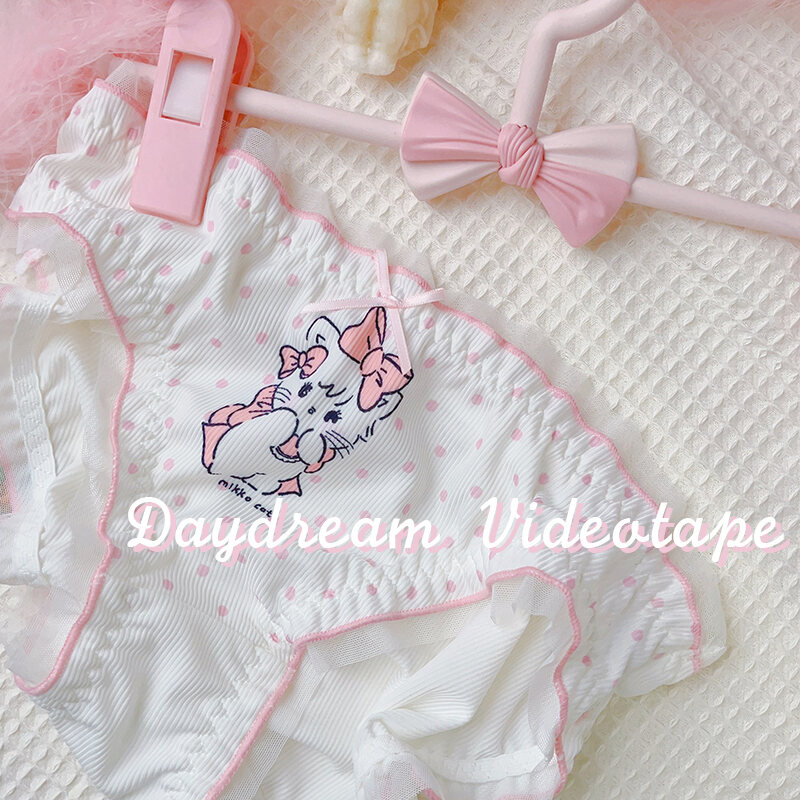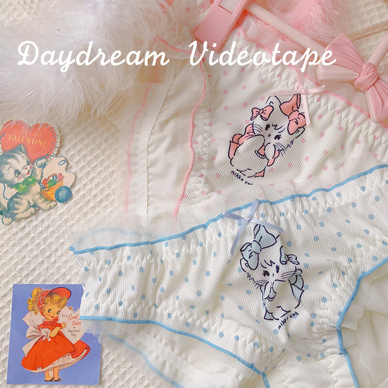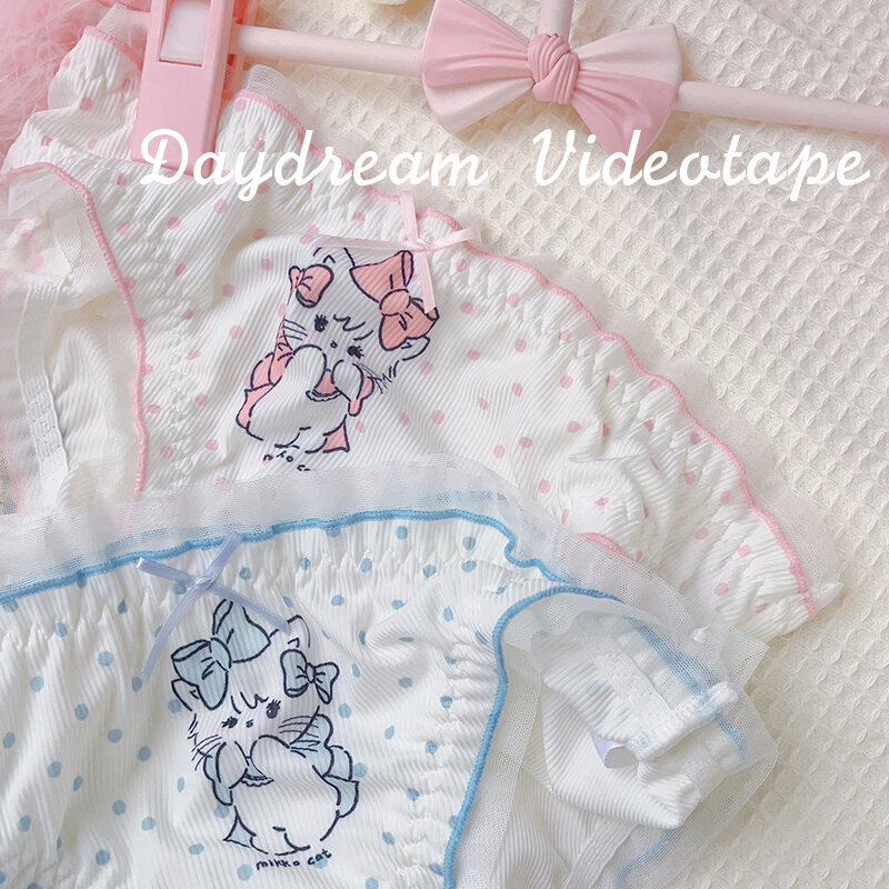 Polka Dot Cat ~ Japanese Style Girl Princess Bowknot Underwear Polka Dots Retro Comfortable Breathable Briefs Sweet Soft and Adorable