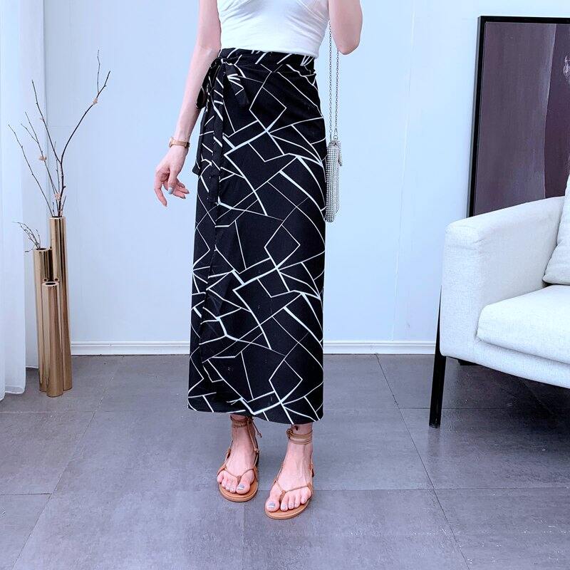 100.00kg Chubby Girl Summer K-style Women's Mid Length Long Length A- line Skirt Elastic Waist One Breasted Pocket plus Size Skirt