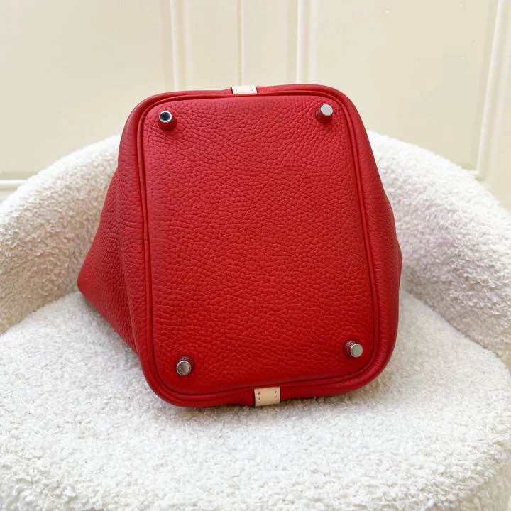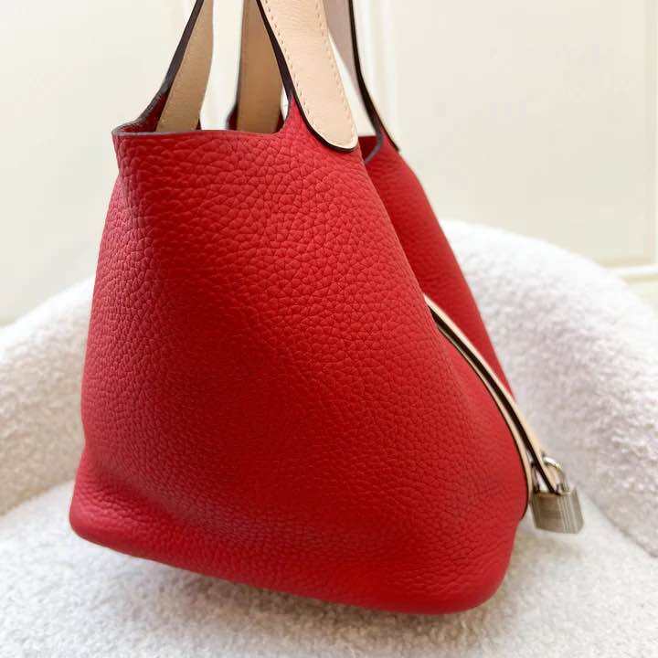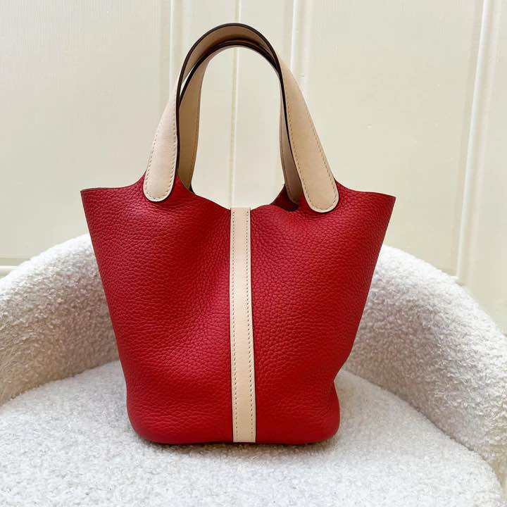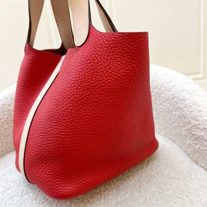 (Pre-loved) Hermes Picotin 18 in Bi-colour (Rouge Tomate Clemence / Rose Eglantine Swift) and PHW