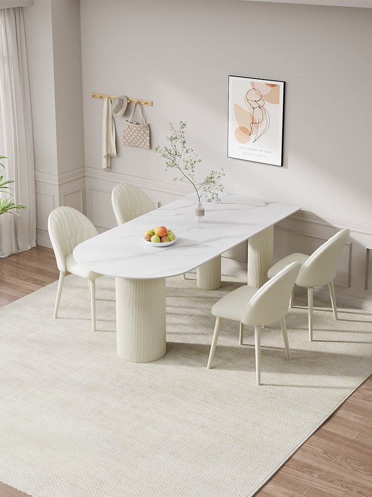 Cream Style High end French style Island Table Oval Pure White Rock Plate Dining Table Light Luxury Dining Table Home Simple