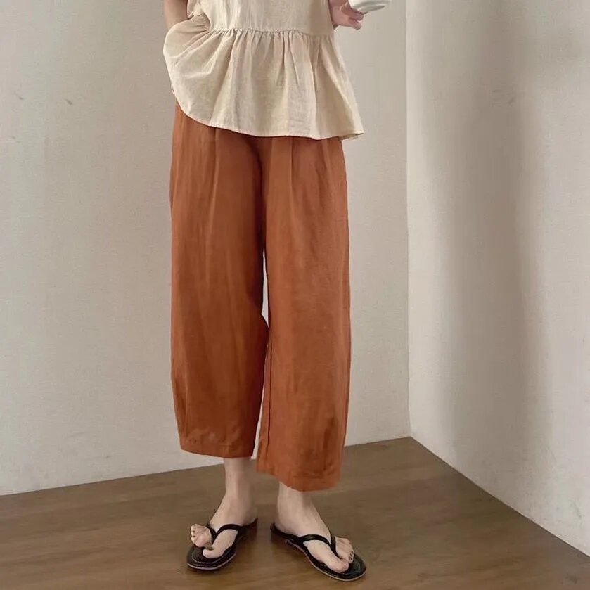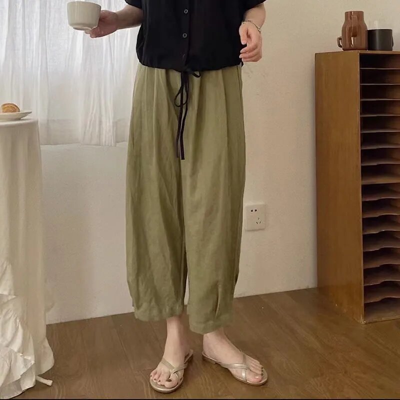 Clearance Sale Missing ~ Counter Withdraw Big Brand Cut-off Label Women's Japanese Style Cotton Linen Cropped Wide-Leg Pants Casual Linen Harem Pants