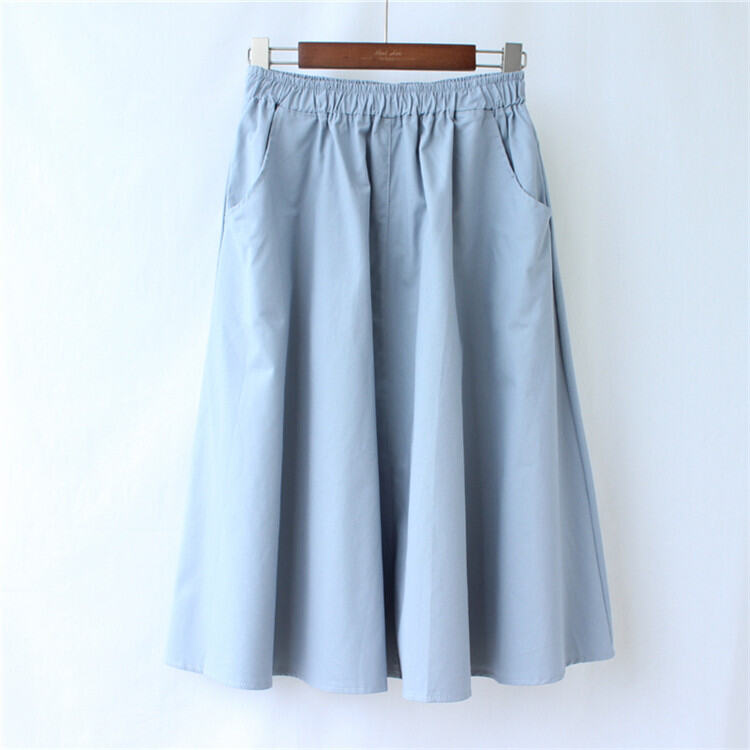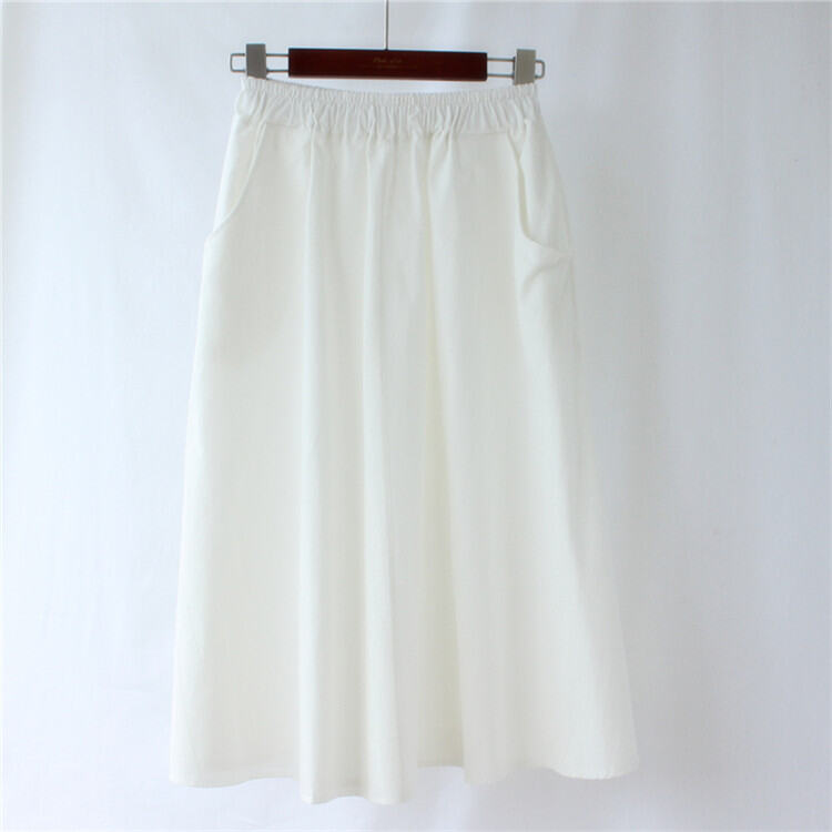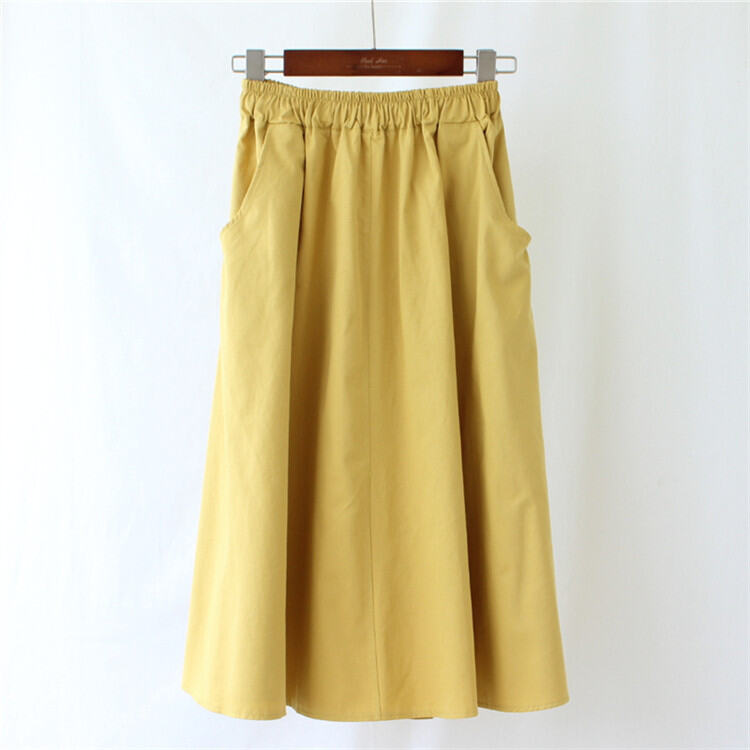 A- line Large Hem Mid Length Long Length Cotton Skirt Women's Autumn Mori Style Umbrella Skirt Solid Color Student Art Pocket Skirt Large Size