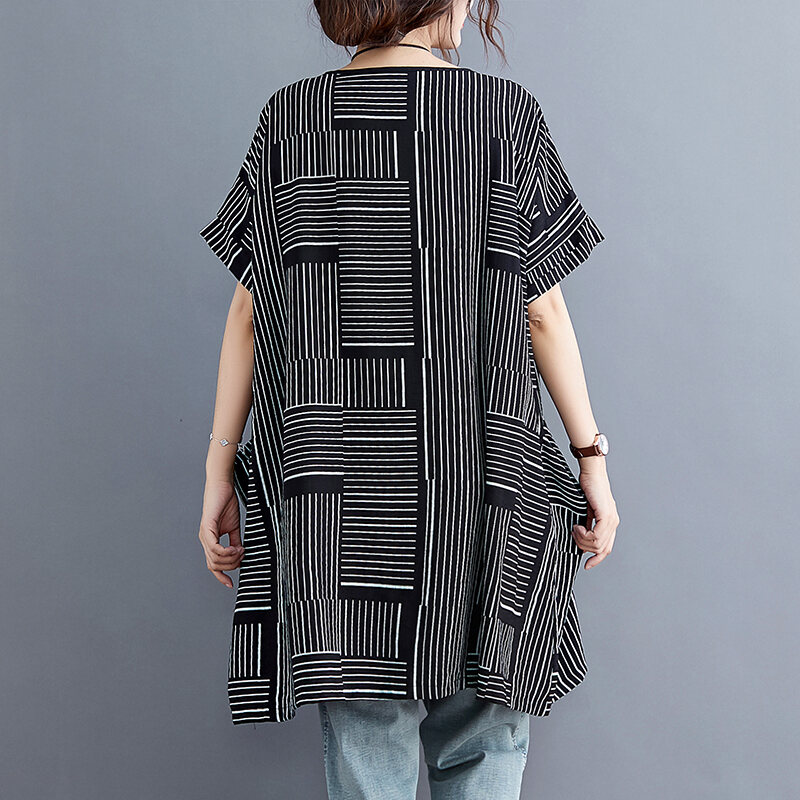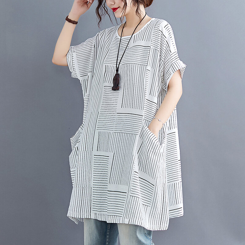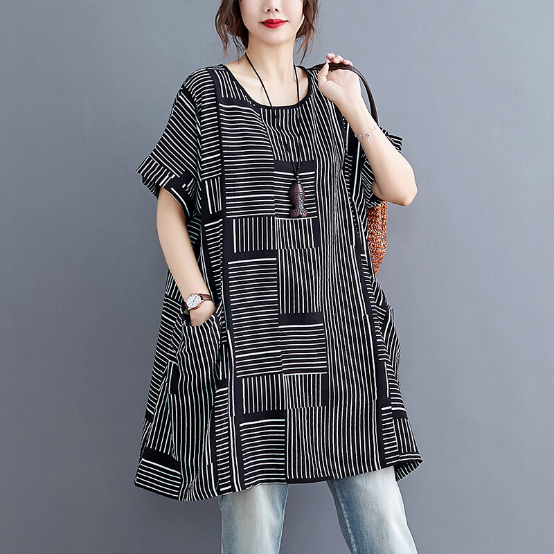 Fat Sister Summer Clothing Stripe Dress Plus size women clothing 100.00kg Mid-Length Slimming Casual Belly Covering Summer T-shirt Skirt Women