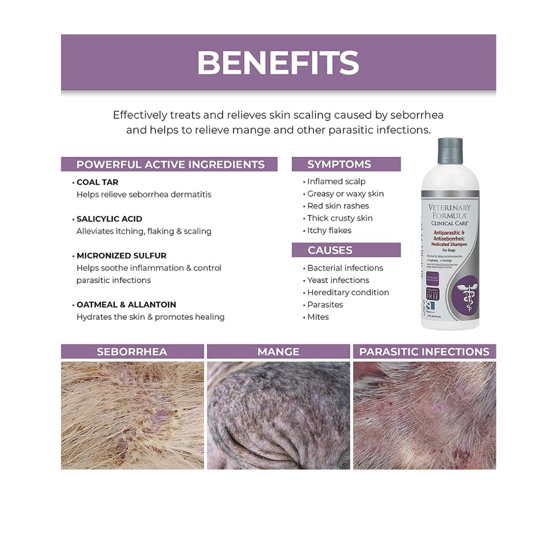 Veterinary Formula Clinical Care Antiparasitic and Antiseborrheic Medicated Shampoo - For Dogs 16oz