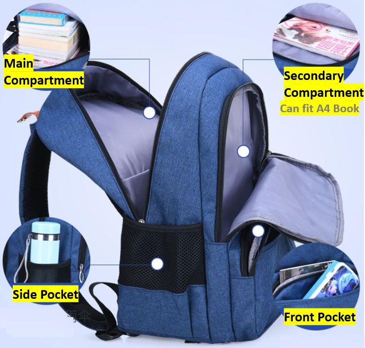Unisex Ergonomic Primary 3 to Secondary school backpack canvas shoulder bag for boys and girls, 小学中学书包