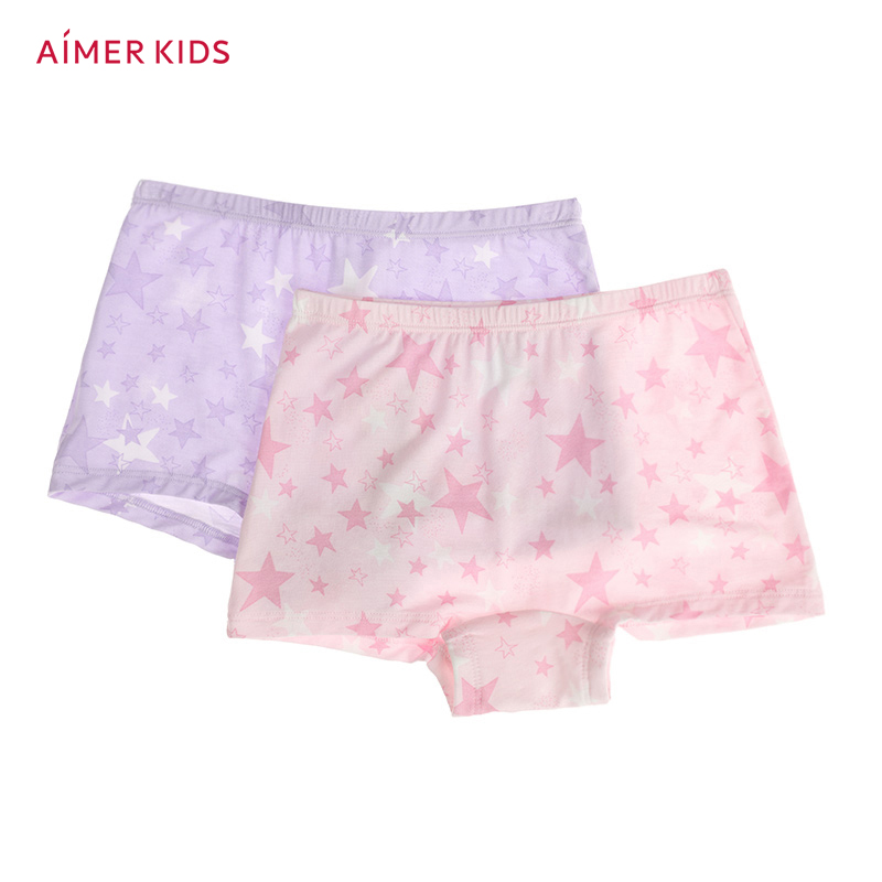 Aimer Kids Girl's Mid-waist Boyshorts Modal Stars Print 2PCS Panties AK1230311