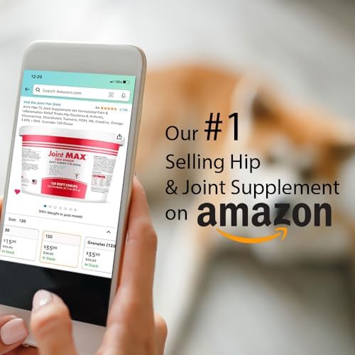 OUR PROPRIETARY BLEND OF INGREDIENTS IS BACKED BY SCIENCE: Joint MAX is a quality hip & joint supplement for dogs at any stage in life. Our soft chews help ease everyday joint stiffness, arthritis pain and support joint structure. Joint MAX offers a convenient and tasty way to provide essential joint care. ADVANCED CARE FORMULA - Joint MAX TS contains a powerful mobility-supporting formula that includes Glucosamine, Chondroitin, Omega-3, Creatine, EPA + DHA and Turmeric. Our formula helps reduce oxidative stress, targets lubrication, cushioning of tissues and provides arthritis pain relief. EASY TO USE - Say goodbye to the struggle of giving your dog supplements! Joint MAX supplements have a delicious liver flavor, making them highly palatable and encouraging compliance. Joint MAX has been shown to provide positive joint mobility responses in as little as 10 days. RELIEF FROM INFLAMMATION - For active dogs or once active dogs that still love to play, Joint MAX Triple Strength uses natural turmeric root to reduce inflammation and relieve joint pain. Your pet will finally rest comfortably after a rough day at the dog park with our super joint enhancer. PERFECT FOR DOGS AT ANY AGE or SIZE - Younger or senior dogs, large dogs and every dog in-between; prevention for pets that have yet to show signs or dogs that have a difficult time moving. Expect big improvement in their flexibility and mobility.See less #8,032 in Pet Supplies ( ) #102 in