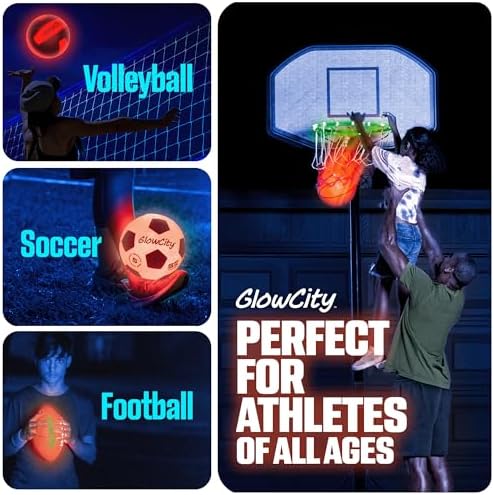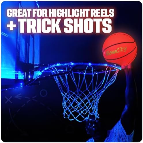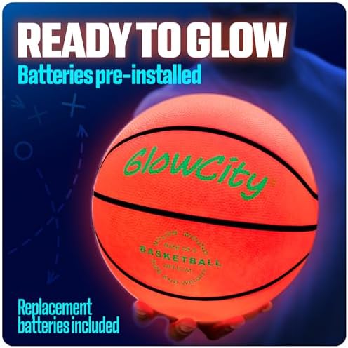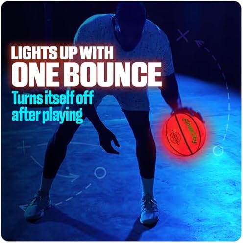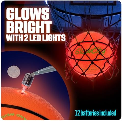 30 HOURS OF GLOW - Perfect for kids, teens and the whole family! This size 7 (29.5") LED basketball features 2 lights that are good for up to 30 hours of nighttime play. IMPACT ACTIVATED - Ready to glow up the night? Our bright red basketball illuminates from the inside with a bounce and automatically shuts off when not in use. THICK SKINNED - Each glowing basketball has a sturdy, water-resistant rubber exterior to help keep the lights safeguarded for indoor and outdoor games. SIMPLE SETUP - This glow up basketball comes with instructions and pre-installed batteries, along with some extras. Simply inflate using a pump to start swishing in the shots. NOTE: Pump not included. FOR ALL AGES - This is a perfect basketball gift for kids of any age. The light up balls make the coolest gifts for teenage boys, making it a blast for everyone.