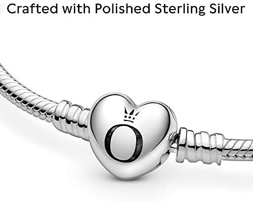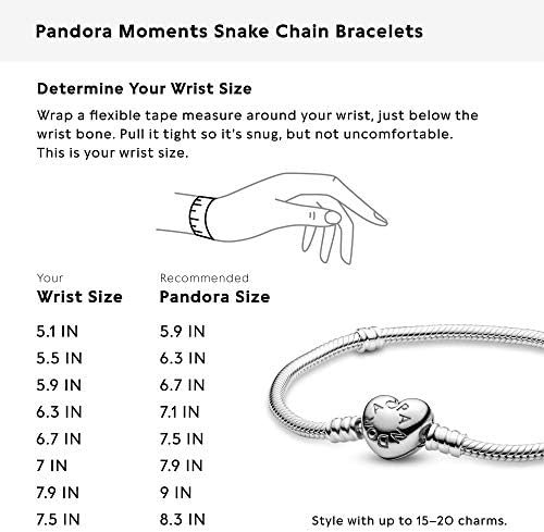 Pandora Jewelry Moments Heart Clasp Snake Chain Charm Sterling Silver Bracelet, 7.9"
