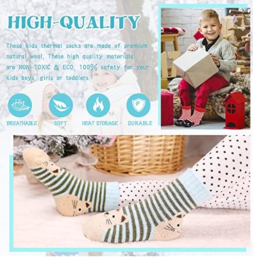PREMIUM WINTER KIDS SOCKS: These children breathable warm socks are made from 45% Wool, 40% Polyester, 15% Spandex. These high quality materials are NON-TOXIC & ECO, 100% safety for your kids boys, girls or toddlers. SOFT COZY WOOL SOCKS : Eocom kids boy girls crew socks is very soft, comfort and stretchy, Soft fuzzy inner design will keep your baby feet and toes warm on cold weather. Cute animal pattern design socks will make the little kids fall in love. DIFFERENT SIZE FOR CHOOES: These kids cute socks have three size to choice: 1-3 Y, 4-7 Y, 8-12 Y. They are soft and elastic. For your convenience, we have included 6 pairs as a single pack, have many color for choose, fox, deer, cat, dinosaur, dog etc. PERFECT FOR MANY OCCASIONS - Kids baby wool socks perfect for everyday wear, work socks, sports socks, boot socks, hiking socks, running socks, school socks, christmas socks, fleece socks, warmer socks, home socks, thermal socks, indoor socks, heavy socks, boot socks casual socks, flying and travelling and all kinds of athletic activities; Good matching for all sneakers, canvas shoes; Suitable for all seasons' wear. GOOD GIFT IDEA SOCKS: High quality wool socks is a great gift idea.This colorful warm socks is an awesome gift idea that you can choose for your little boy, little girls, daughter, kid, baby, son or friends in their birthdays and anniversaries. Also, it is the most perfect Christmas gift that you can find. #51,361 in Clothing, Shoes & Jewelry ( ) #175 in
