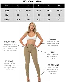 Stretchy high rise skinny jeans with a 5 pocket construction with ONE button and zip fly closure. Curved back pocket details and a lifted flattering fit. "Push-Up" series lift and flatters your butt, truly makes your butt look smaller and in shape 76% Cotton / 22% Polyester / 2% Spandex, Machine wash cold. Imported. Fit: This garment fits true to size. Fabric: Fabric has VERY GOOD stretch WAIST SIZES: S;24-25; M:27-28; L-29-30; XL:30-33; 2XL 34-37