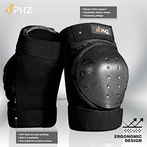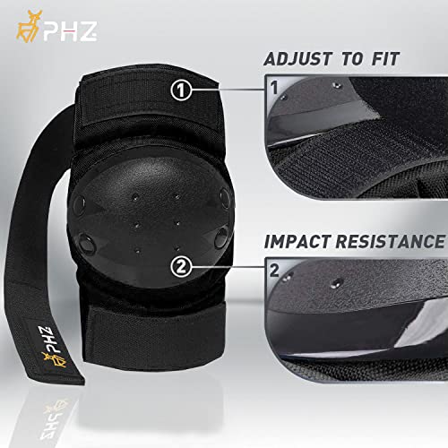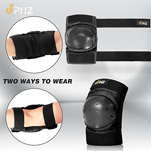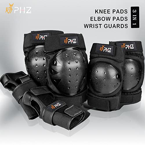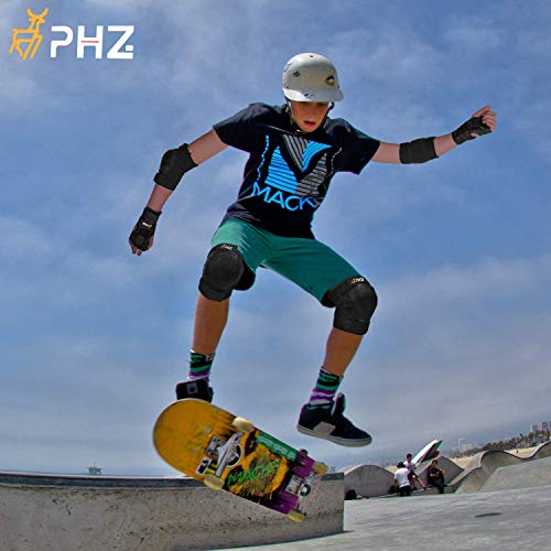 PHZ. Knee Pads Kids/Youth/Adult Protective Gear Set Elbow Pads Wrist Guards 6 in 1 for Sports Skateboarding Roller Skating Inline Skate Cycling Bike BMX Bicycle Scooter Riding