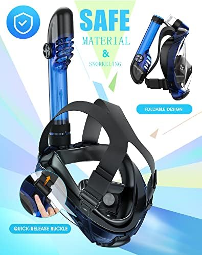 [PANORAMIC VIEW AND SUPPORT CAMERA MOUNT]Our snorkel mask adopts transparent flat lens made by high definition premium PU resin, preventing from distortion the view and eliminating the dizziness underwater. With the removable motion camera mount allows you to clearly discover the underwater world. [G2 DRY TOP SYSTEM] G2 snorkel mask is designed by a famous designer. We adheres to folding design, as well as the addition of a two-channel exhaust valve,and to expanded the diameter of the top snorkel to 1.26 inches. [BREATHING FREELY AND MAXIMUM AIR INTAKE] After two years of repeated exploration and improvement, our G2 full face snorkel mask has the outstanding performance in breathing and air intake. When you use our snorkel mask for surface snorkeling, you will feel comfortable and smooth breathing. [PROFESSIONAL ANTI-FOG&ANTI-LEAK]The full face snorkel mask is made of high-quality silicone, the entire snorkel mask is fully wrapped to achieve a leak-proof effect, and the silicone layer inside the mask directly isolates the air from the nose and mouth, and the heat air is not easy to condense on the mirror surface. [AFTER SALES SERVICE] As long as you are our customers,since the day you buy G2 snorkel mask. We will provide 24-hour uninterrupted service. We sincerelly believe we will bring the customers the most satisfied buying experience.