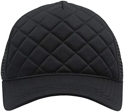 Fashion Quilted Structured Firm Front Trucker Argyle Pattern Stitching On Front Panel with Full Buckram Contrasting Neon 4 Rows Stitching on Visor Plastic Adjustable Snap In Matching Neon Color 100% Cotton Front and 100% Polyester Mesh Back