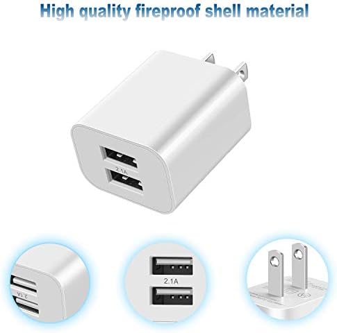 【Universal Compatibility】: USB Charger Box compatible with iPhone 15/14/13/12/XS/iPhone Max/iPhone XR/iPhone X/iPhone 8 Plus/iPhone 8/iPhone 7 Plus/iPhone 7/iPhone 6s Plus/iPhone 6s/iPhone 6 Plus/iPhone 6/iPhone 5s/iPhone 5c/iPhone 5/iPad Air/Air 2/iPad mini/mini 2/mini 4/iPad 4th gen/Samsung Galaxy/S9/S8/S7/S6 LG and More 【Convenient to use】: Home charger adapter allows charging at home or in the office via USB cable connection. Simply plug in the USB cable, and plug the adapter in to the wall. Compact, lightweight, portable, stylish, easy to store.And 2-Pack chargers you can share them with your lover, family or friends. 【Safe&Quality Reliable】: USB Wall Charger has protection system against over charging,over currents,and over heating. the Charger heads will automatically stop charging when power is full,which can maximumly protect your device 【USB Wall Charger】: Output: DC 5V 2.1Amp; Input: AC 100V - 240V (U.S. & World Standard).Best replacement for original charger, work with any device with a USB port. 【What You Ge】: 2x Usb Wall Charger. 12-month warranty and friendly customer services, you can feel free to contact us if you have any question, we will contact you in 24h, and satisfy you.