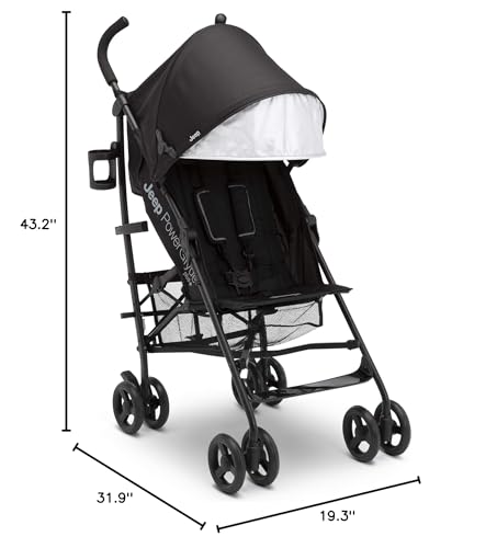 Jeep PowerGlyde Plus Stroller by Delta Children - Lightweight Travel Stroller with Smoothest Ride, Aluminum Frame, 4-Position Recline, Extra Large Storage Basket, Black