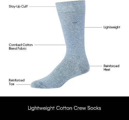 OFFICIAL CALVIN KLEIN: Men's Dress Socks; A global lifestyle brand that exemplifies bold, progressive ideals and a seductive aesthetic COMFORT FIT: Luxurious cotton dress socks accented with a sleek Calvin Klein logo detail are perfect for easy wear comfort SUPER SMOOTH: Dress socks with a silky smooth feel and comfort stretch, Men's socks for shoe sizes 7-12 provide superior comfort; As a leader in American fashion through a clean aesthetic and innovative design, Calvin Klein socks are the best choice MULTIPACK VALUE: For one great price, get 4 pairs of high quality crew men's dress socks; Ideal for formal wear or business casual outfits; Wear these dress socks for weddings, at the office, or any formal occasion EASY CARE: Machine Wash, Tumble Dry; Please Reference Product Description for More Details