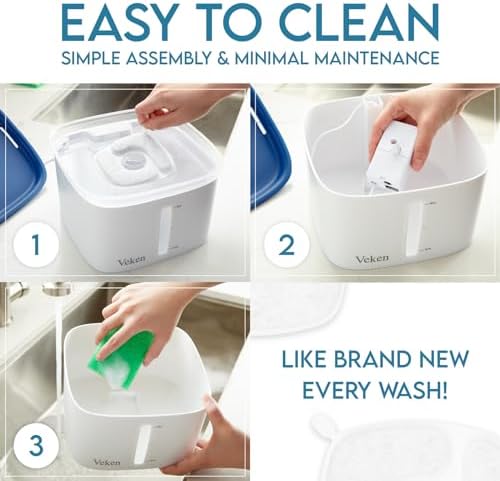Large capacity: Staying hydrated is the key to preventing kidney and urinary tract diseases. The 95oz capacity makes this pet fountain water dispenser a perfect fit for small to medium dog breeds and all cats. High-quality: Made of food grade materials, this drinking fountain is BPA free, durable, and easy to operate and clean. The water-level window and LED Light let you observe how much water your pets drink in real time, and lets you see exactly when you need to fill the water bowl. There is a switch on the wire to control the light so you could easily turn it on or off. Two flow designs: The Veken Pet Fountain has 2 modes: flower waterfall (faucet drinking) and the gentle fountain. The water streaming down the petals of the flower on the fountain will draw your pets attention and encourage animals to drink more often. 5 stages filtration system: In addition to keeping water fresh via circulation, the 5 stages system, including coconut shell activated carbon & cotton layer, ion exchange resin and thick non-woven fabric, keeps water better tasting and safer for pets. Ultra-quiet pump: The pump on this water dispenser is ultra-quiet, has low-energy consumption and will last 1.5-2 years. #129 in Pet Supplies ( ) #1 in #1 in