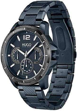 HUGO #Sport Men's Multifunction Stainless Steel and Link Bracelet Casual Watch, Color: Blue (Model: 1530194)