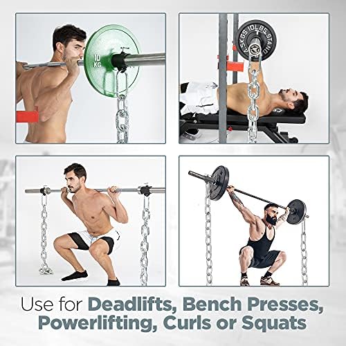 High-Quality Construction: Designed to withstand your hardest workouts, LoGest’s Weight Chain Lifting are expertly crafted using heavy-duty, rust-resistant steel construction to supply reliable use and long-term durability. Versatile Use: Effectively targeting different muscle groups by attaching to a bar or draping over your shoulders, these Weight Lifting Chain are perfect for strength training, deadlifts, squats, bench presses, curls, lunges, pull-ups, dips and more. 4 Weight Capacities: Sold in pairs, these Weight Lifting Chains workout are available in four different weight capacities to meet everyone’s personal ability level. Choose among 15, 25, 35 and 45 pounds chain workout to engage in productive workout sessions at any time. Easy to Use: Each Weight Lifting Chain weight comes complete with a steel black bar collar, equipped with an L screw to secure the lock. These collars allow easy attachment to and removal from any 2-inch Olympic barbells. Effective Tools: Ideal for powerlifting, weight lifting and strength training, the bar gets heavier as the weightlifting chains with collar is lifted from the ground gradually during exercises. As such, it’s effective for targeting your back, legs, core, arms, hips and shoulders.