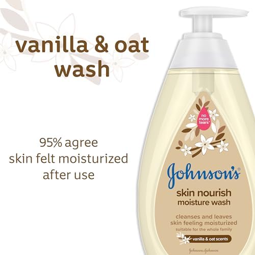 20.3-fluid ounces of Johnson's Skin Nourish Moisture Baby Body Wash enriched with vanilla & oat scents to gently cleanse baby's delicate skin and hair, leaving your little one's skin feeling touchably soft and smooth Designed to gently cleanse and leave skin feeling moisturized, this baby wash is enriched with 2x more moisturizers* and a gentle vanilla & oat scent. *vs Johnson's Bedtime Wash Made with a tear-free No More Tears formula, this moisture baby bath wash is as gentle on eyes as pure water, made for baby's delicate skin and hair and suitable for kids and adults too Hypoallergenic tested with pediatricians and dermatologists, this nourishing baby skin care wash contains no parabens, phthalates, sulfates or dyes This nourishing baby wash creates a rich lather. To use, wet baby's hair and body with warm water, apply wash with your hand or washcloth, gently lather and rinse #2,752 in Health & Household ( ) #9 in #10 in